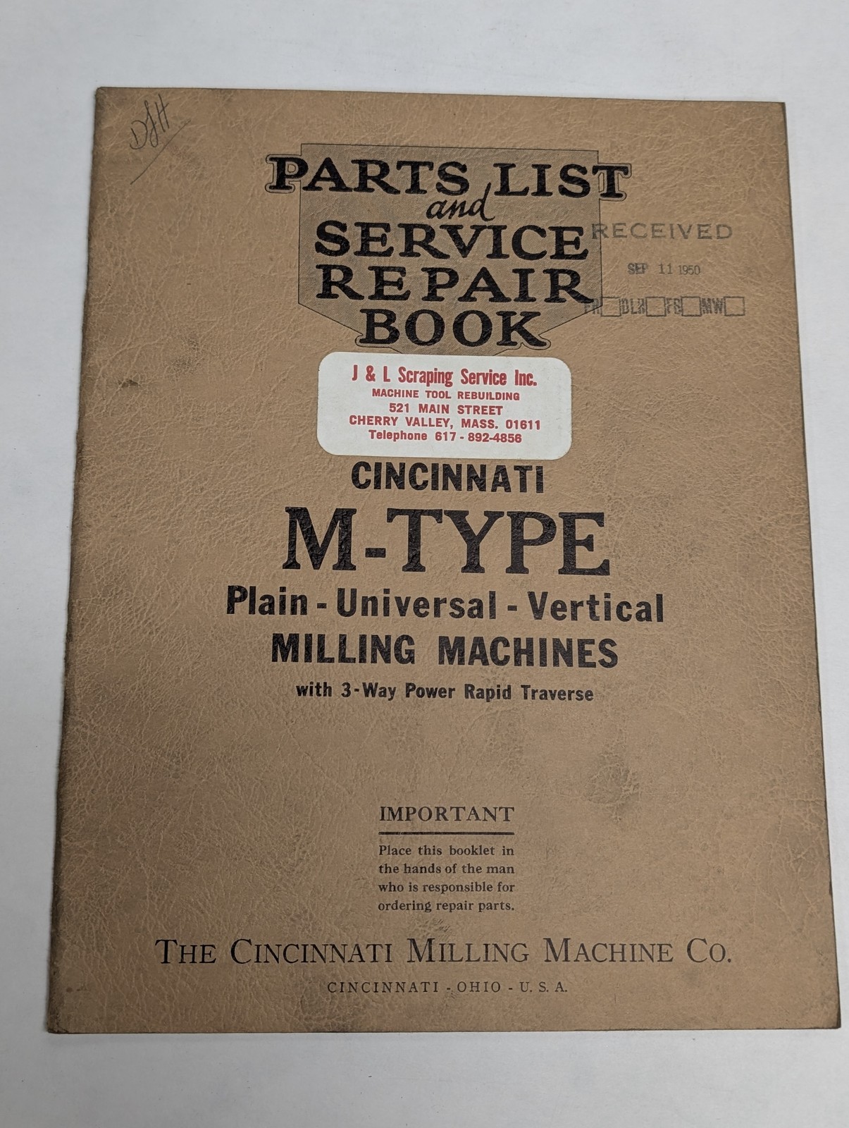 1930 Cincinnati Milling Machine Part List Service Repair Manual M-Type Universal
