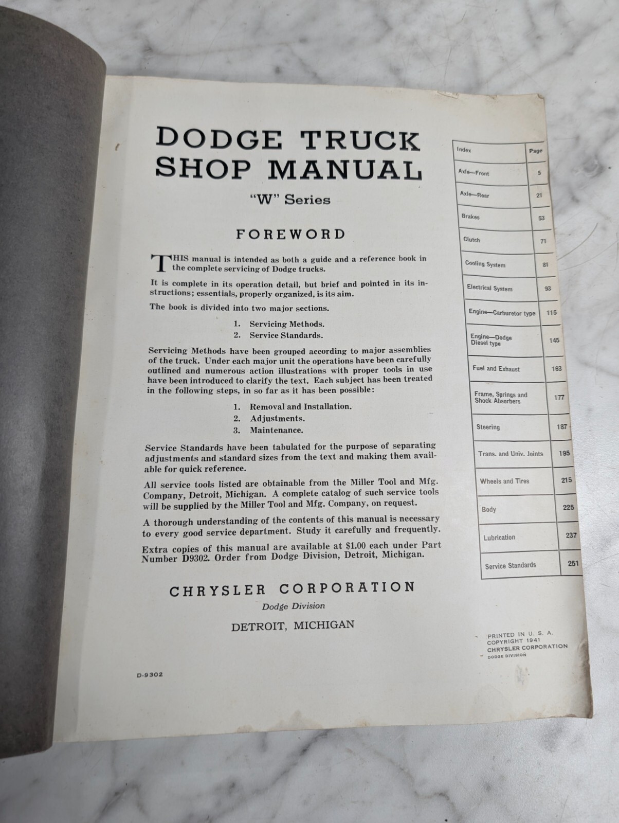 1941 Dodge Truck Shop Manual Original W-Series Job-Related Trucks
