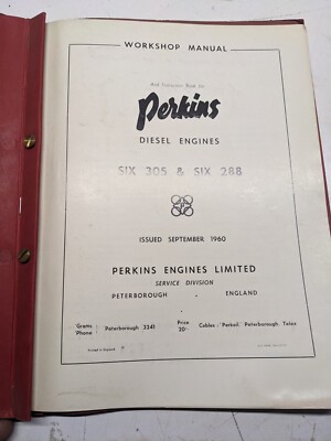 1960 Perkins Diesel Engine Workshop Service & Instruction Manual 6.305 6.288