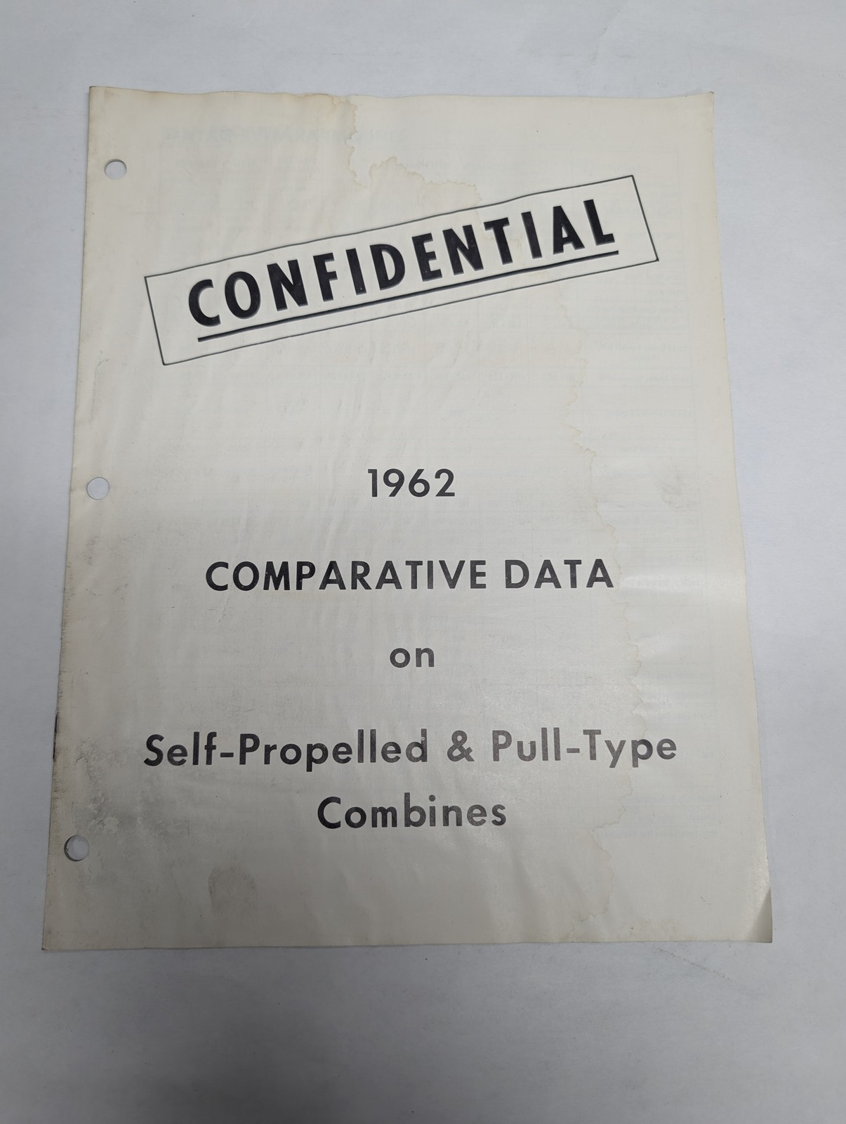 1962 Comparative Data Self-Propelled Pull Type Combines International Cr-1399-M1