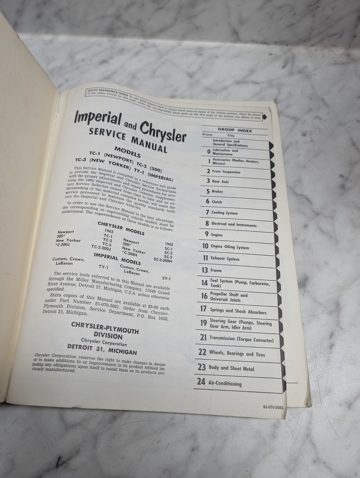 1963 Imperial Chrysler Tc-1 Tc-2 Service Manual Repair Maintenance Shop