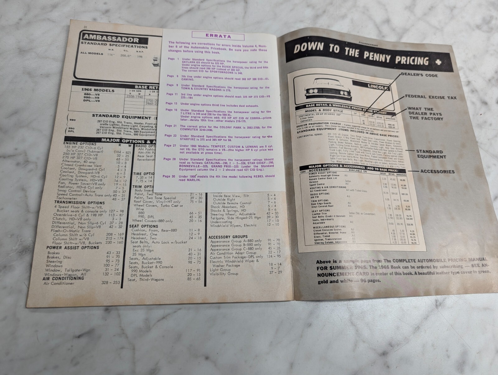 1966 Automobile Car Prices Retail And Wholesale ’66 10Th Year Pricebook Guide