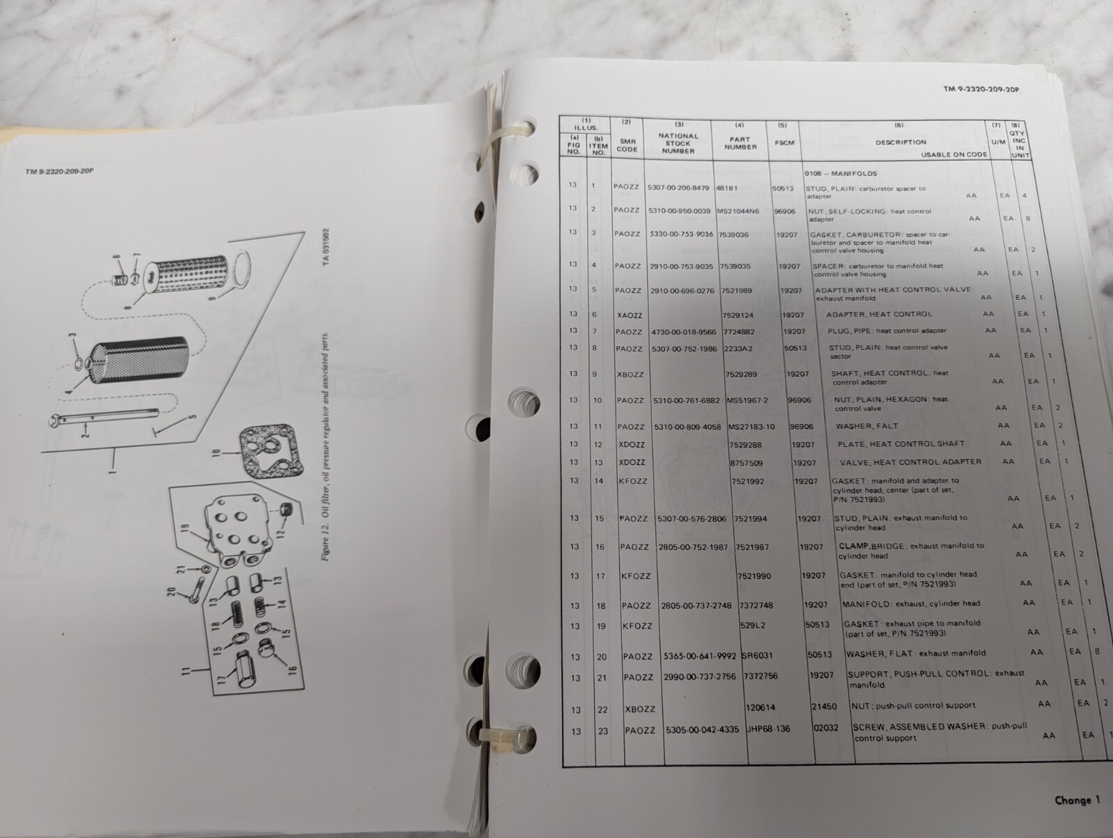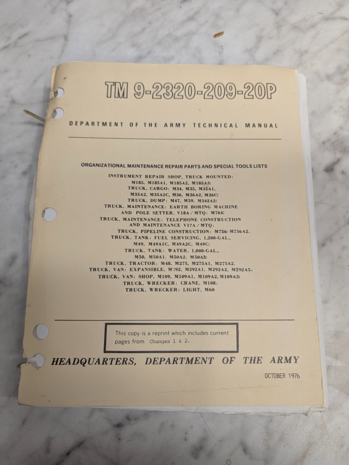 1976 Technical Service Manual Tm 9-2320-209-20P Repair Parts List Catalog Book