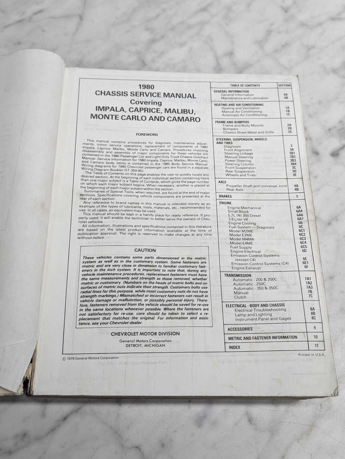 1980 Chassis Service Manual Impala Repair Chevrolet Camaro Malibu Monte Carlo