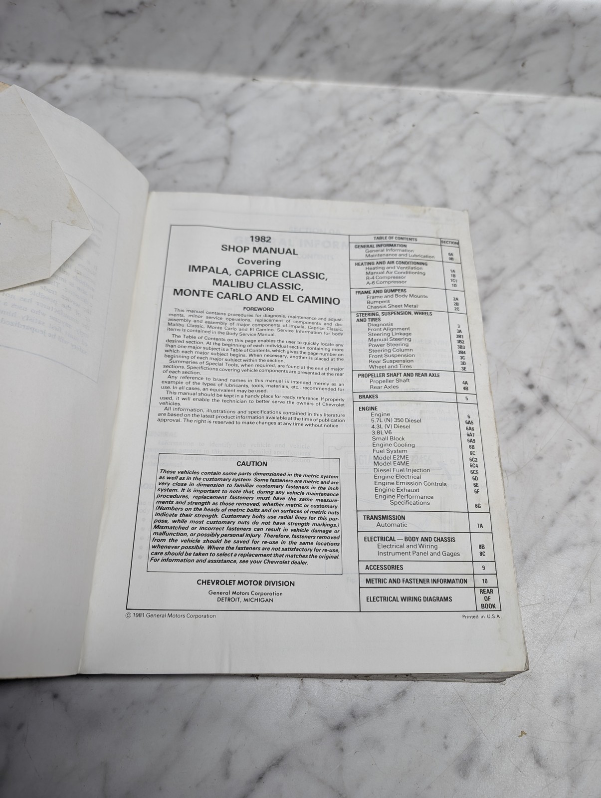 1982 Chevrolet Impala Caprice Classic Malibu Shop Manual Service Repair St-329