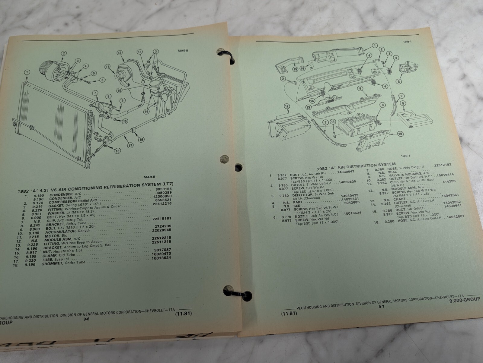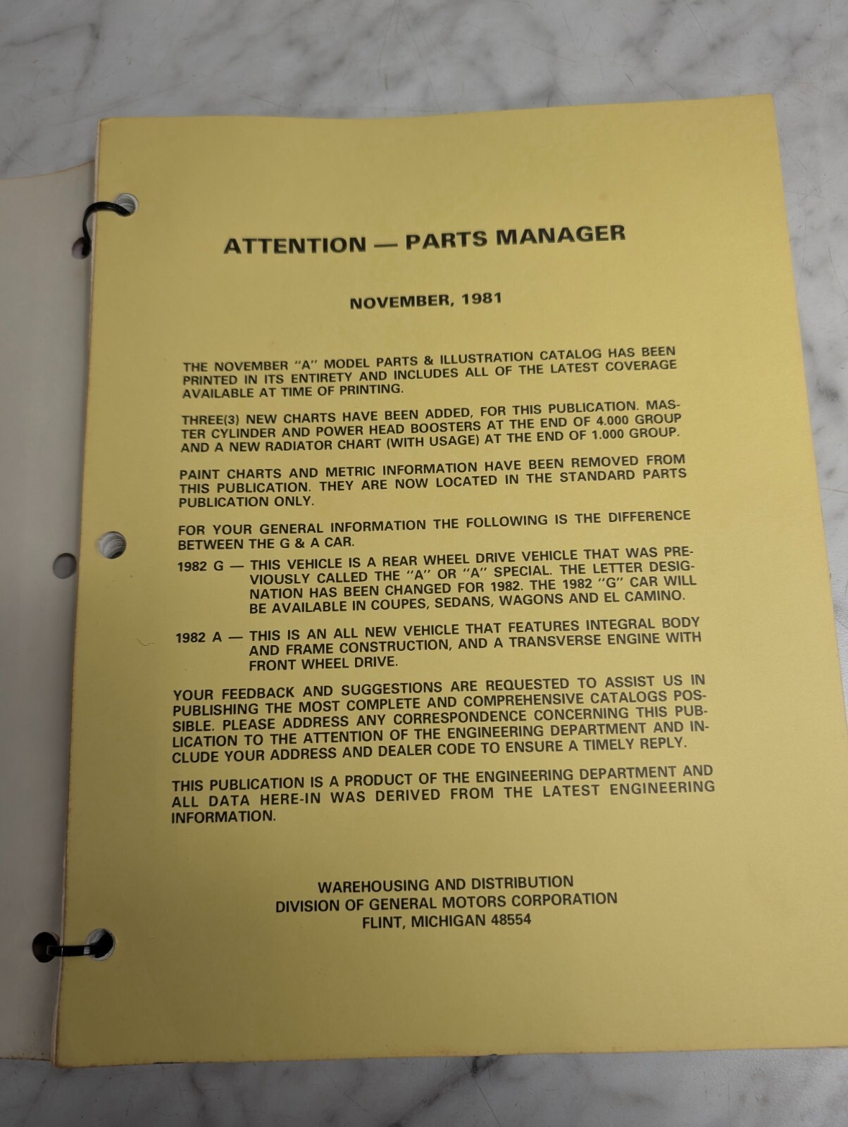 1982 Chevy A Body Celebrity Service Parts List Illustrations Catalog Manual