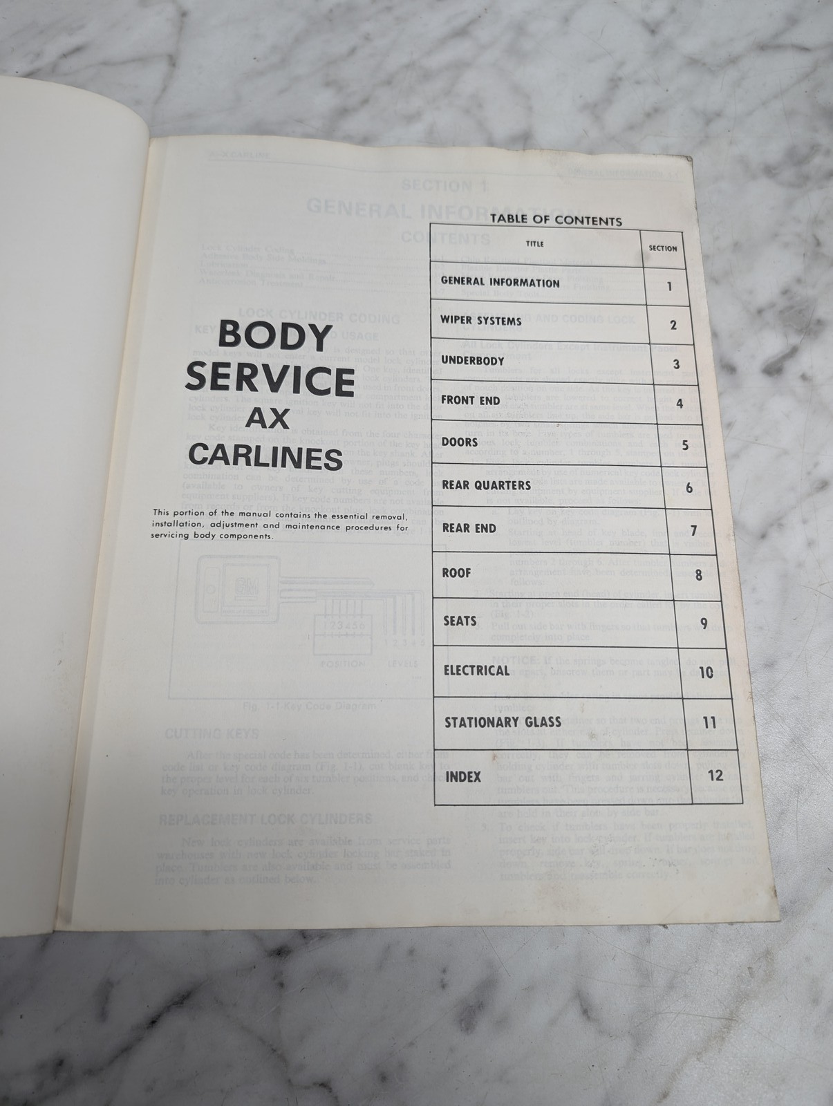 1983 Fisher Body Service A-X Carlines Service Manual J T F G Styles Shop Book