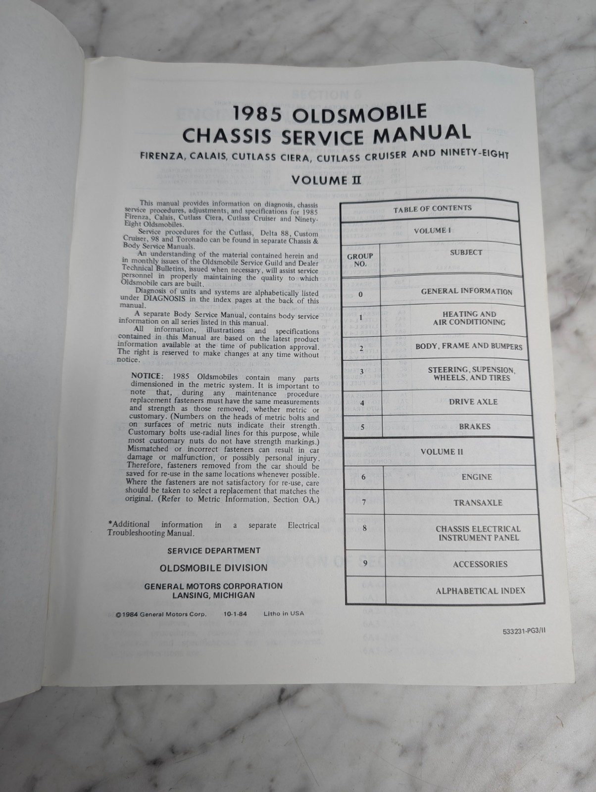 1985 Oldsmobile Cutlass Custom Cruiser Service Manual Shop Repair Book Volume 2