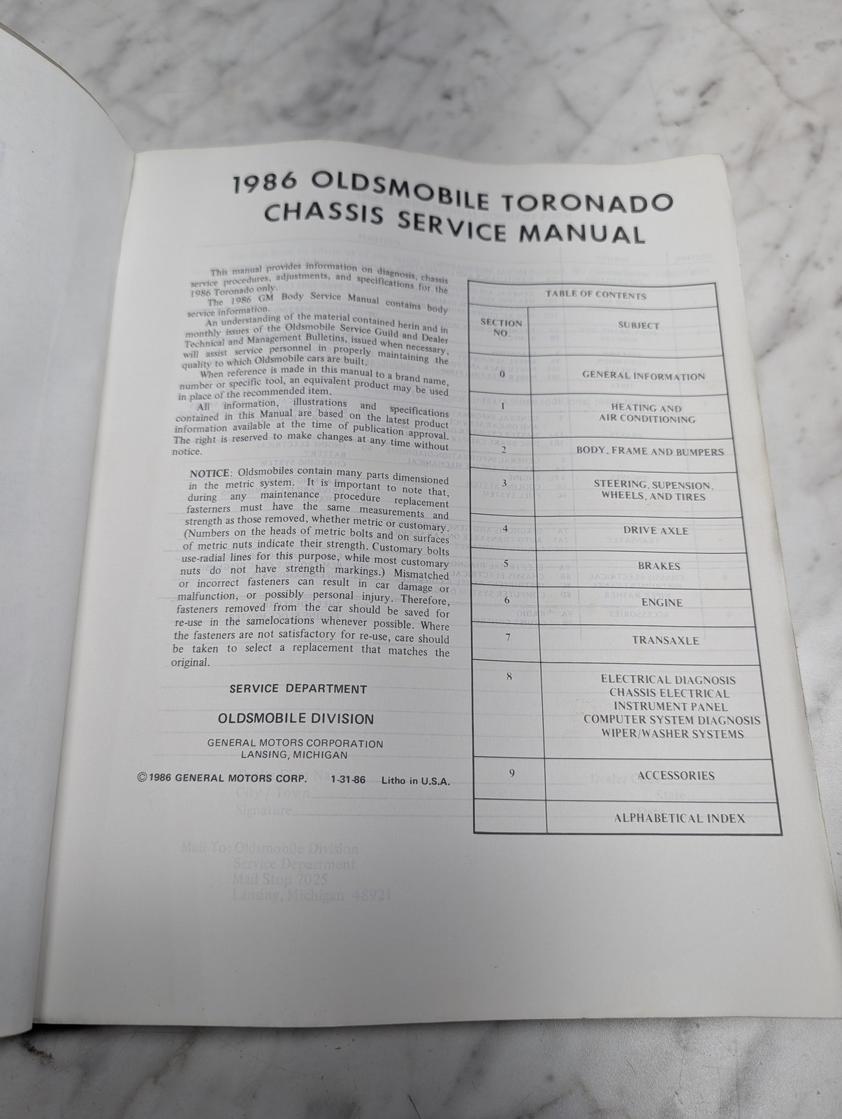 Factory service manual for 1986.