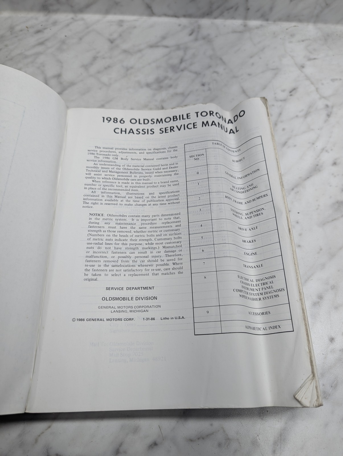 Factory service manual for 1986.