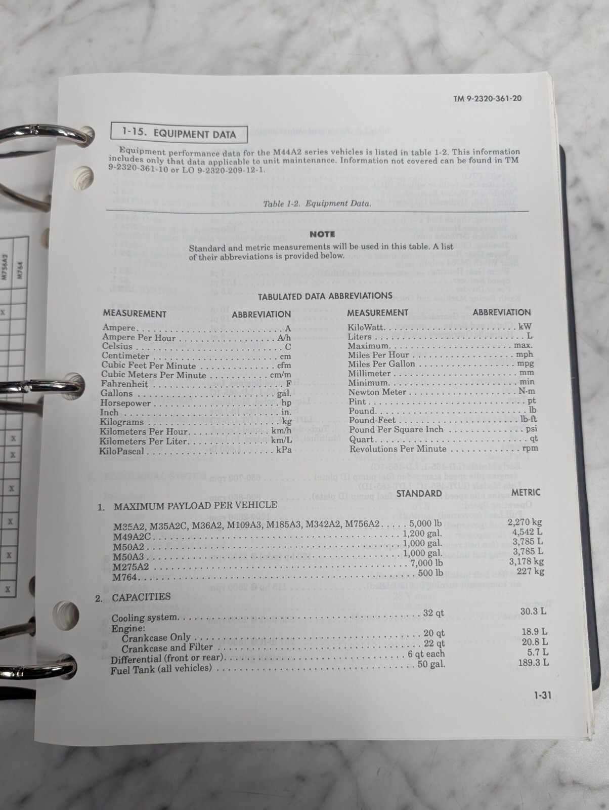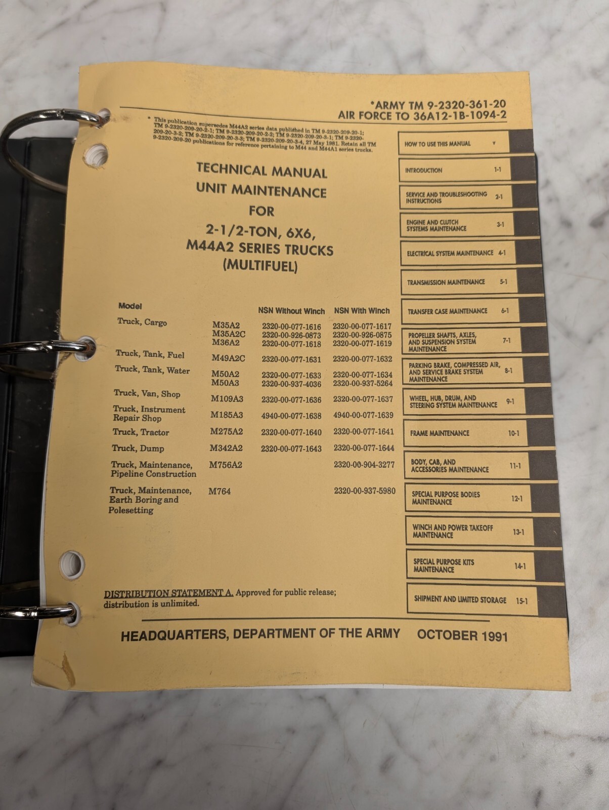 1991 2.5 Ton 6X6 M44A2 Tm 9-2320-361-20 36A12-1B-1094-2 Technical Service Manual