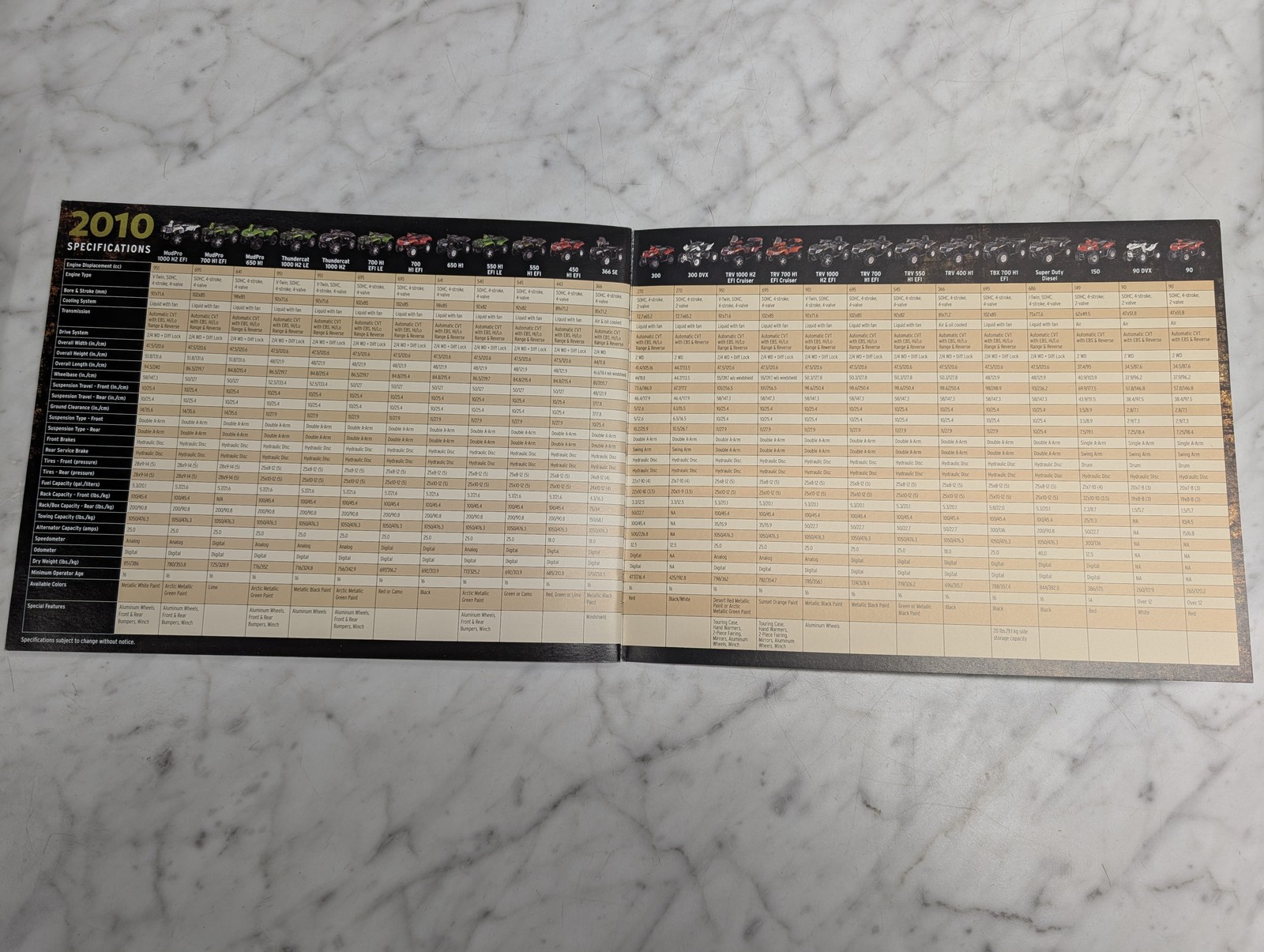 2010 Specifications Artic Cat Sales Brochure Literature Catalog