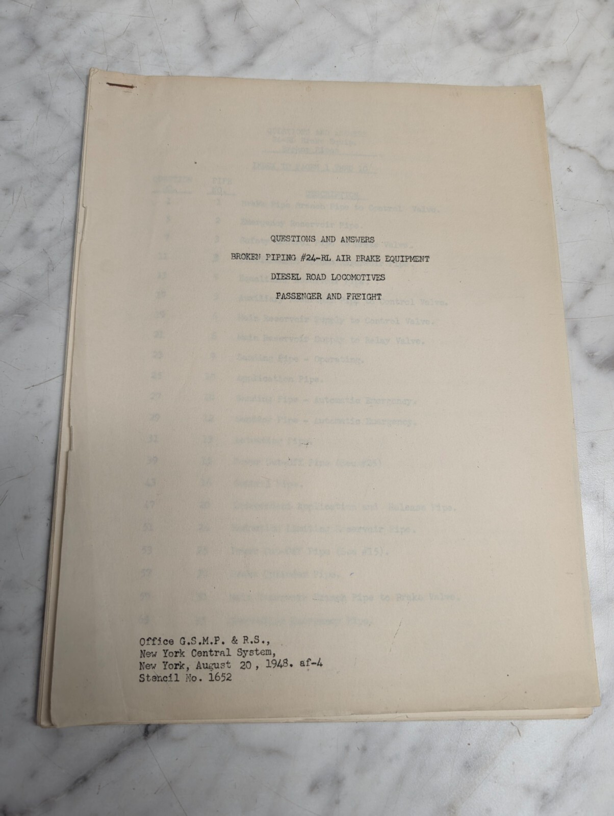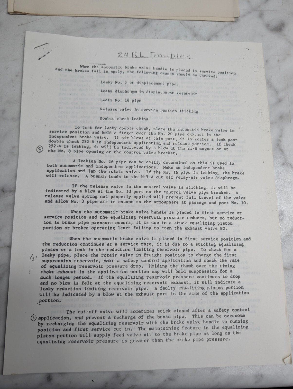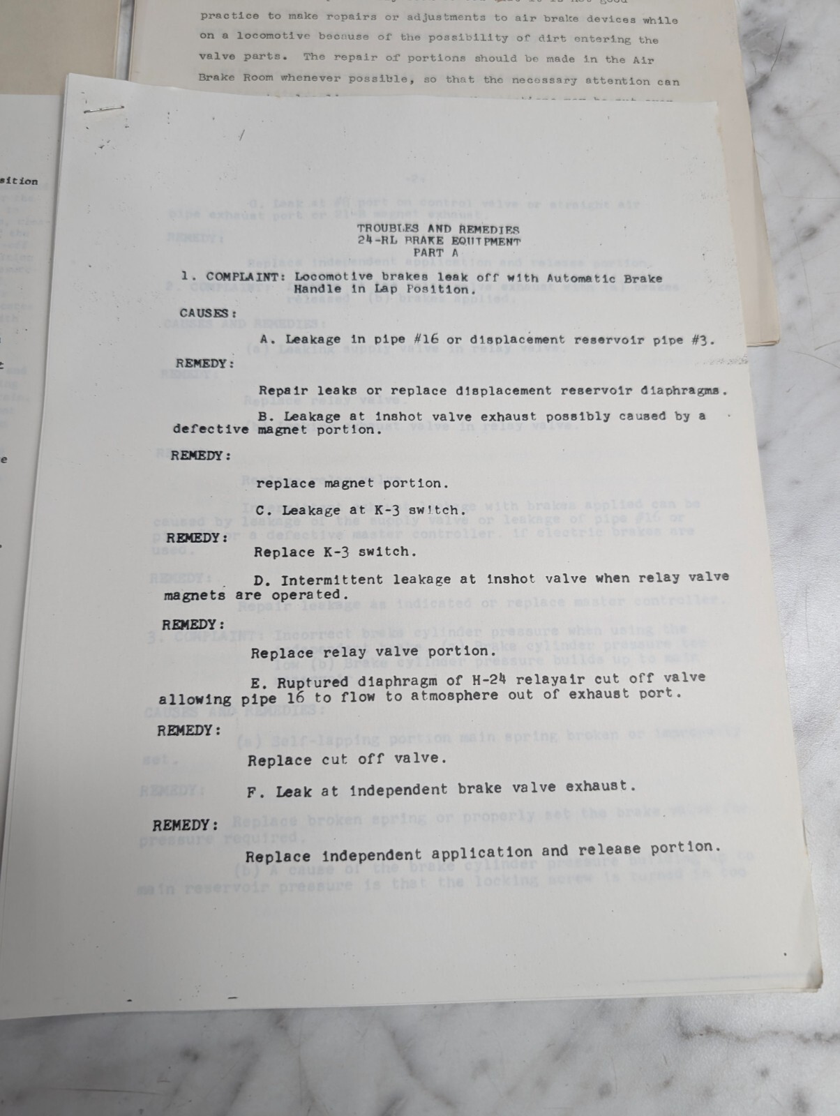 24-Rl Air Brake Equipment Diesel-Electric Locomotive Literature Trouble Shooting