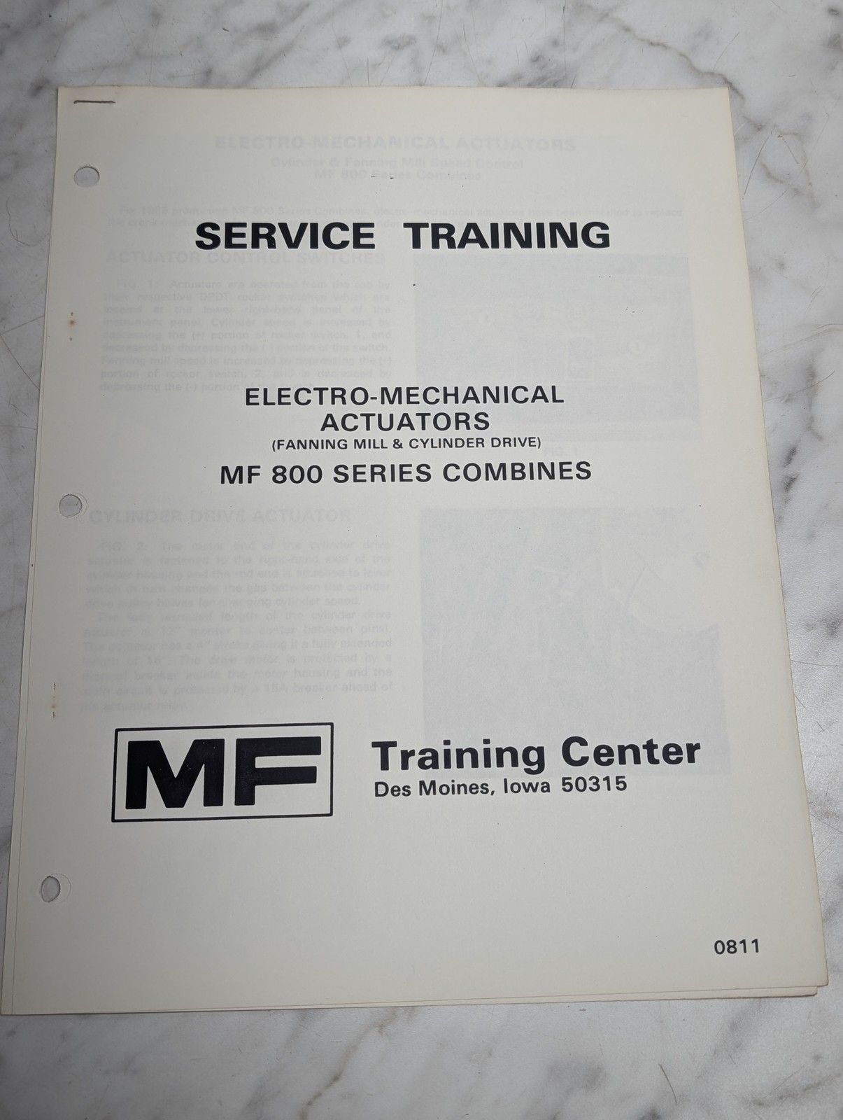 800 Series Combines Electro-Mechanical Actuators Service Training Manual Shop