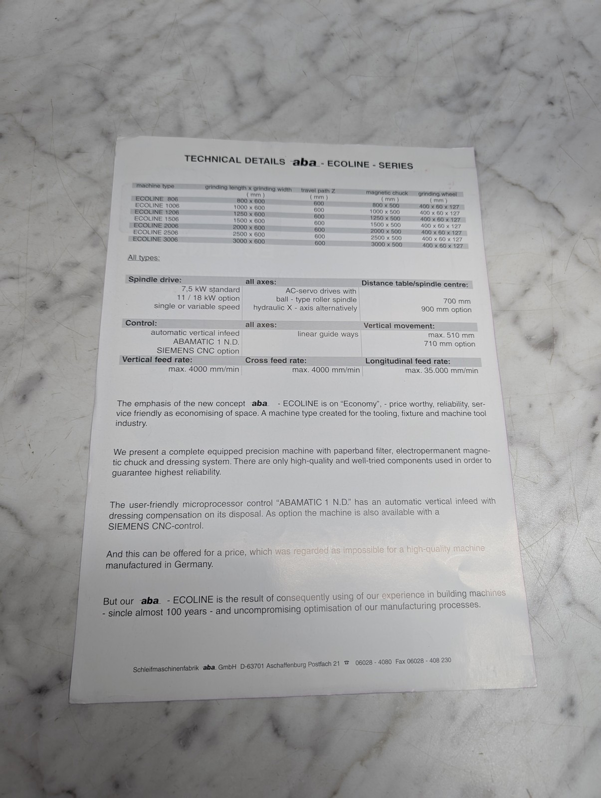 Aba Ecoline Sales Brochure Catalog Literature Specs Features Info