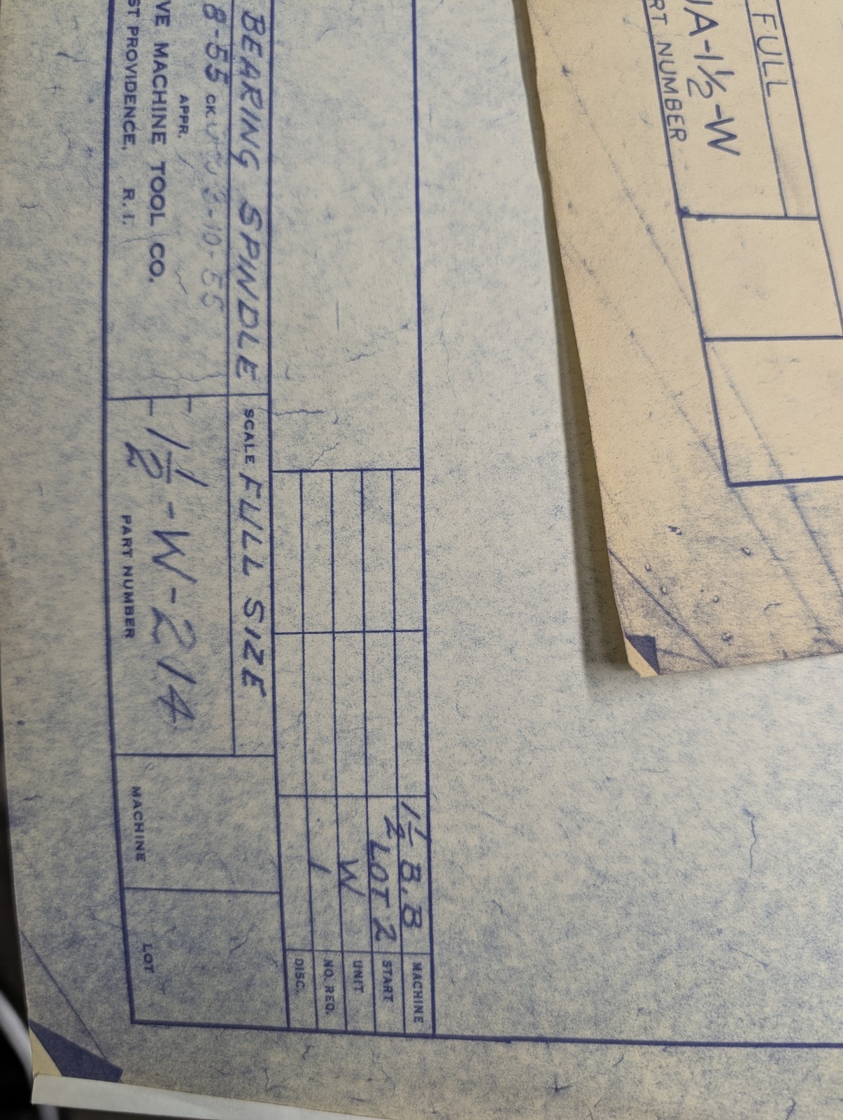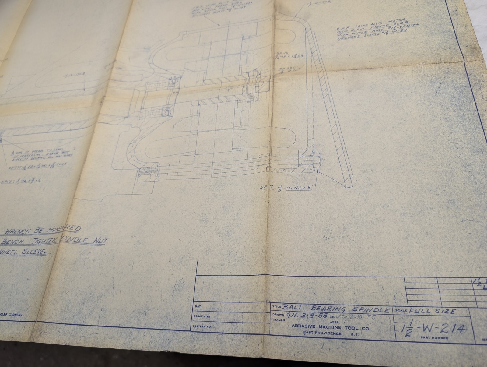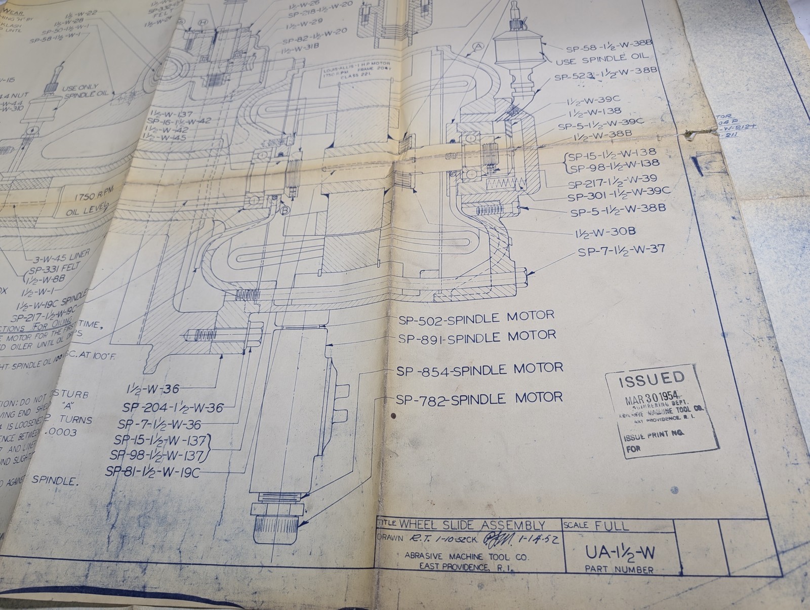 Abrasive Machine Tool Drawing Prints Bearing Sping & Wheel Slide Assembly 1-1/2