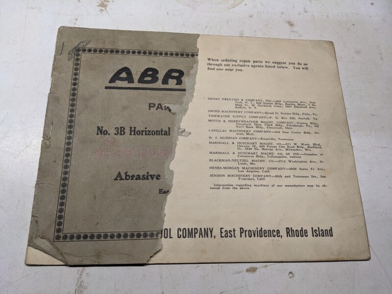 Abrasive Machine Tool Service Parts List Book Manual Catalog Surface Grinder 3B
