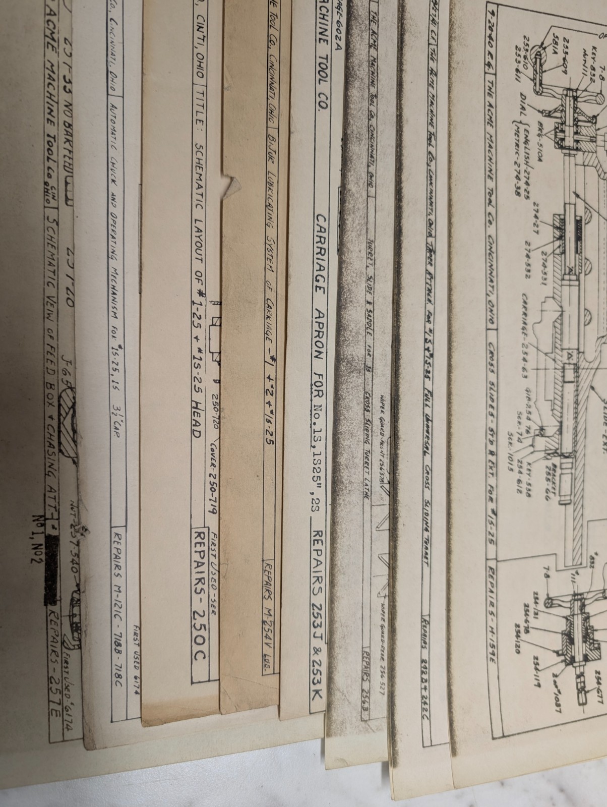 Acme Machine Tool Lathe Prints Drawings Diagrams Information Sheets Lot