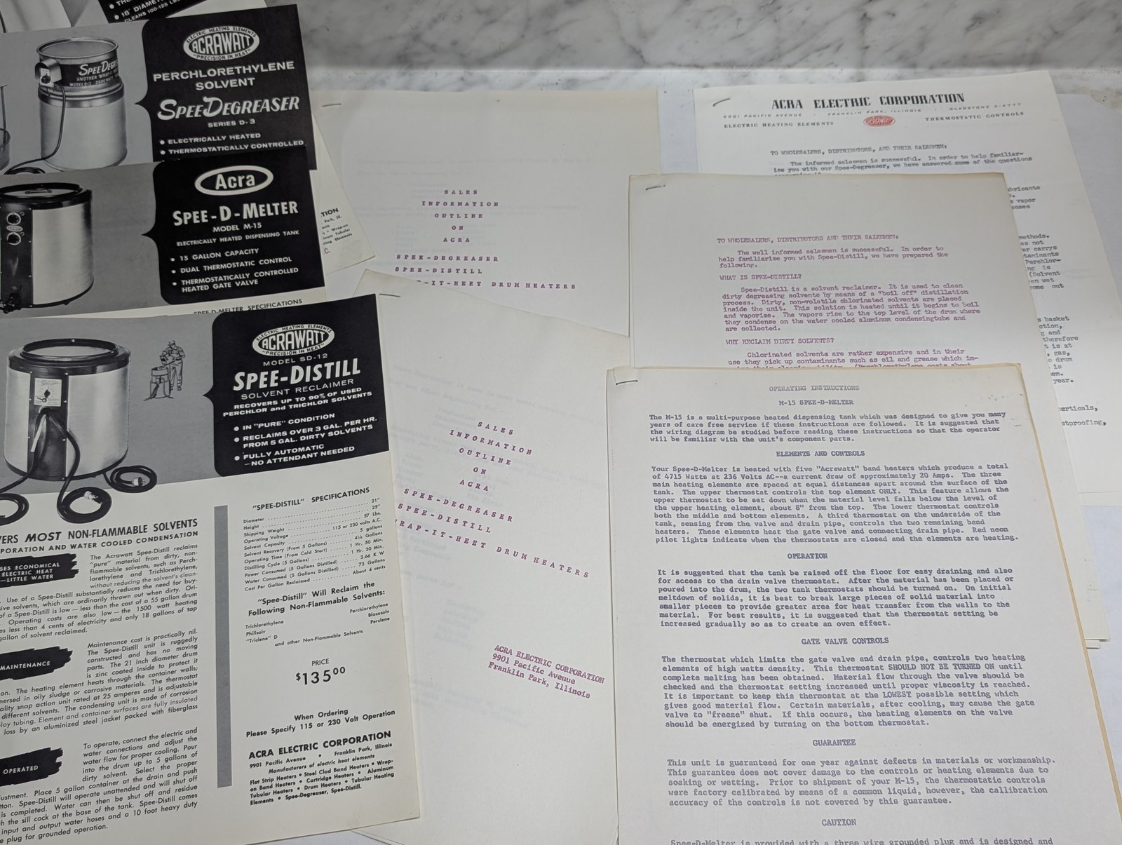 Acra Electric Spee- Degreaser Distill Wrap Melter Sales Information Literature