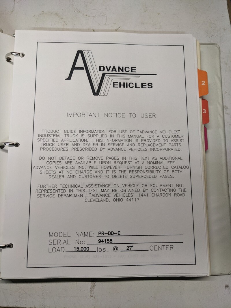 Advance Vehicles Service Repair Manual Parts List Book Pr-Dd-E Maintenance