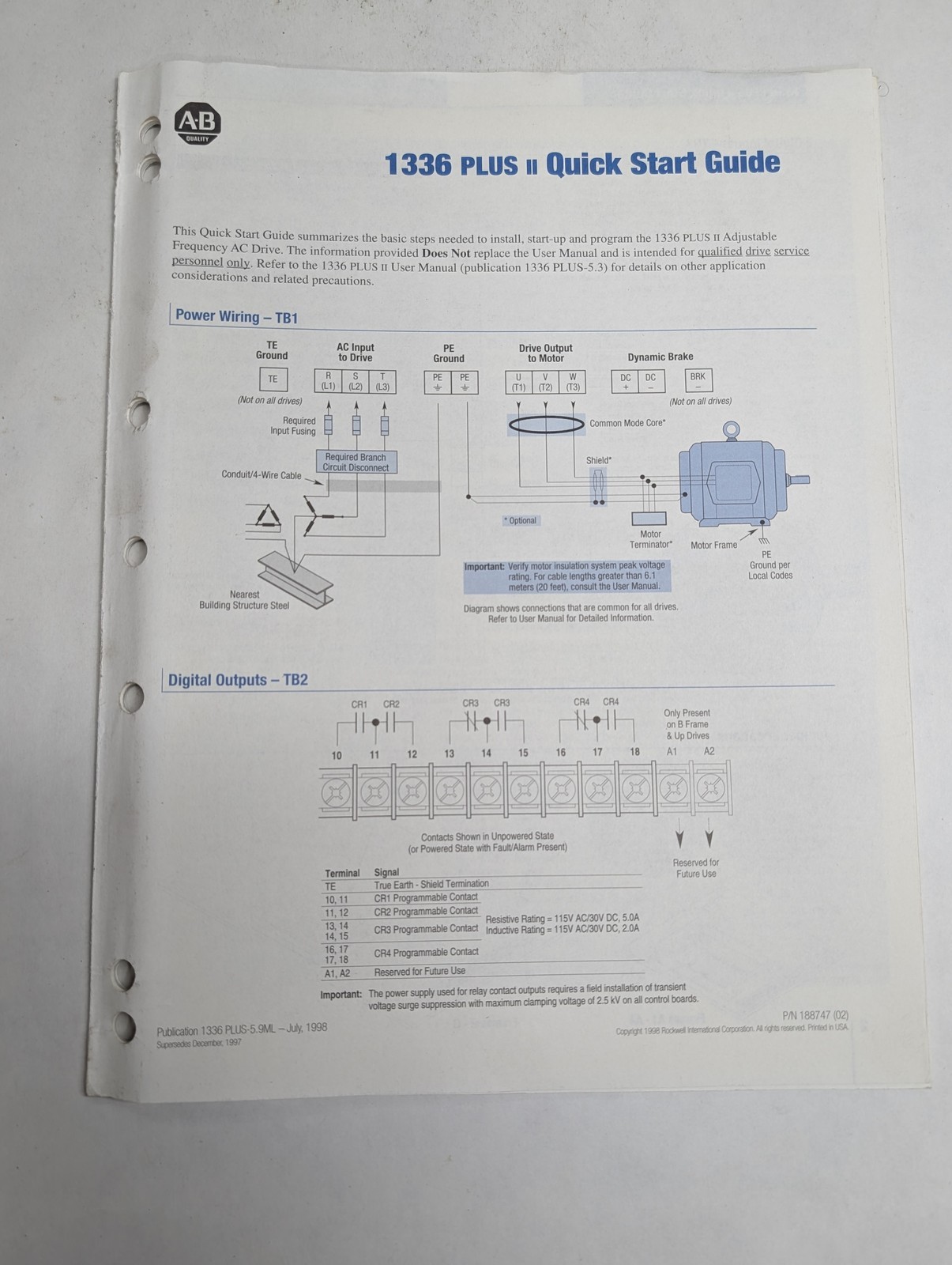 Allen Bradley Ab 1336 Plus Ii Adjustable Frequency Drive Quickstart Guide Manual