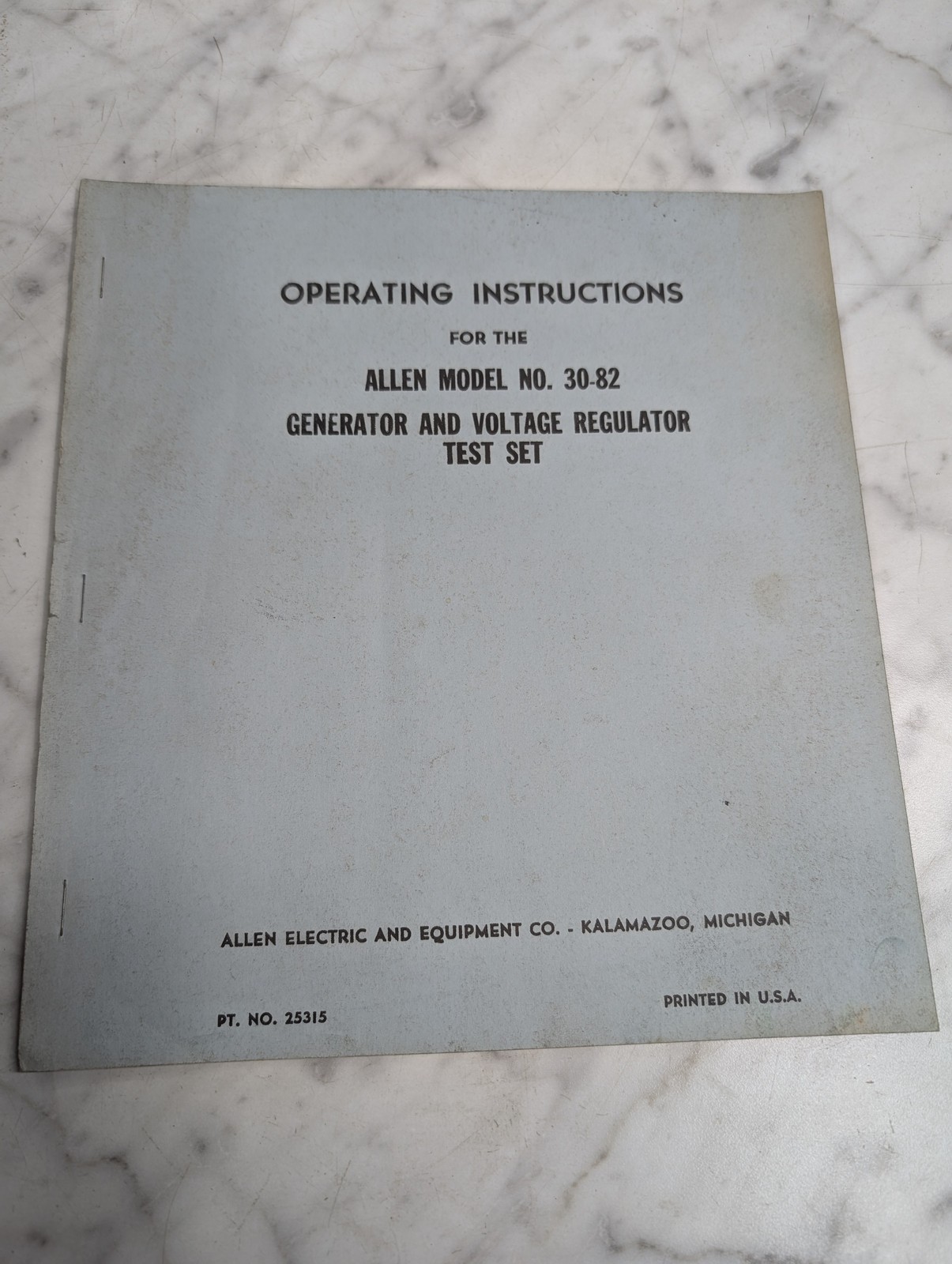 Allen Electric Equipment Operator Instruction Manual #30-82 Generator Test Set