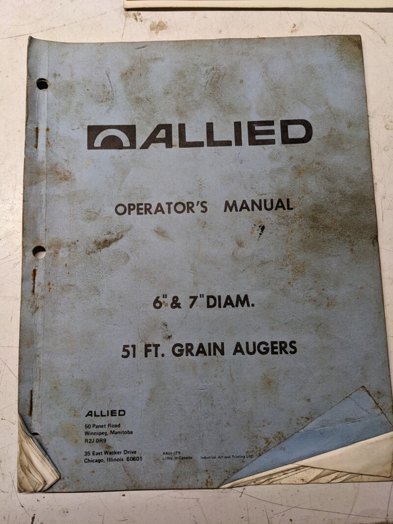 Allied Farm Equipment Operators Manual Parts List Book 51′ Grain Auger 6” 7”