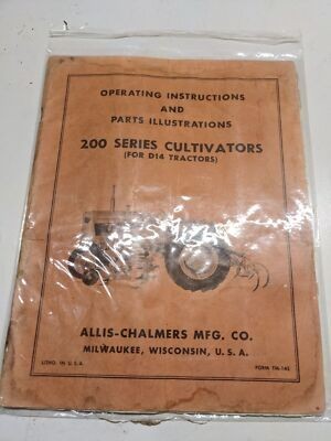 Allis Chalmers 200 Series Cultivator Operating Instruction Part Book 14 Tractor