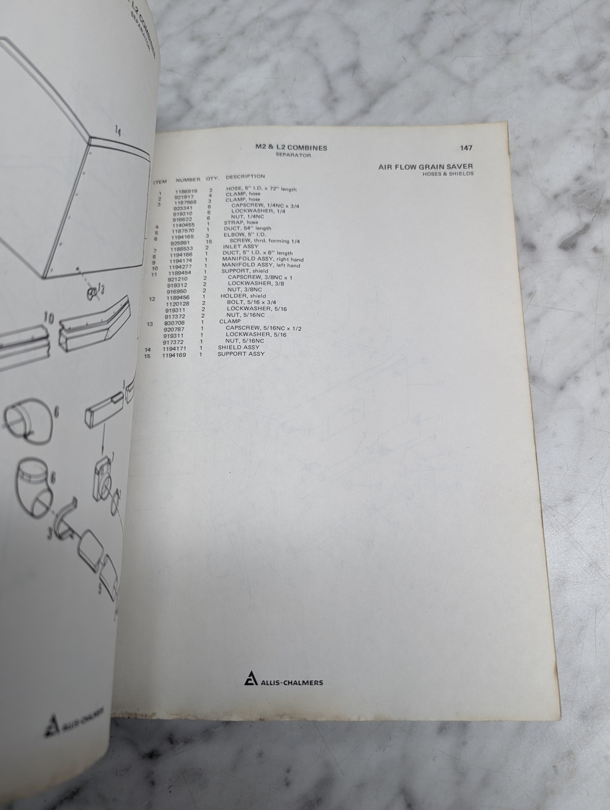 Allis-Chalmers Ac M2 L2 Combines Parts List Book Manual Catalog Reference