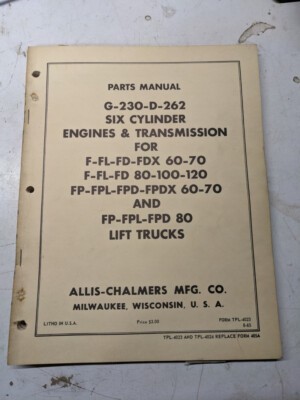 Allis Chalmers Engine Parts Manual F Fl Fd Fdx Fpdx Fpd Fpl 60-120 G-230D-262