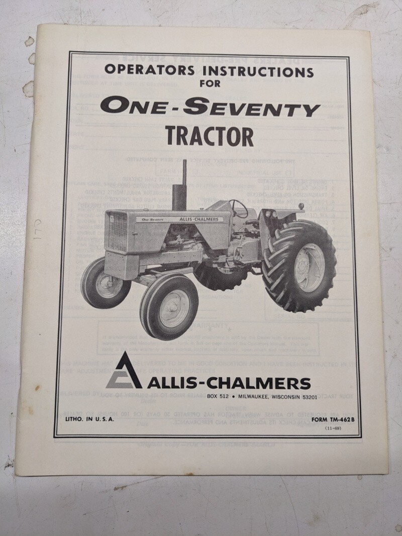Allis Chalmers Operator Instruction Owner Manual One-Seventy Tractor Tm-462B