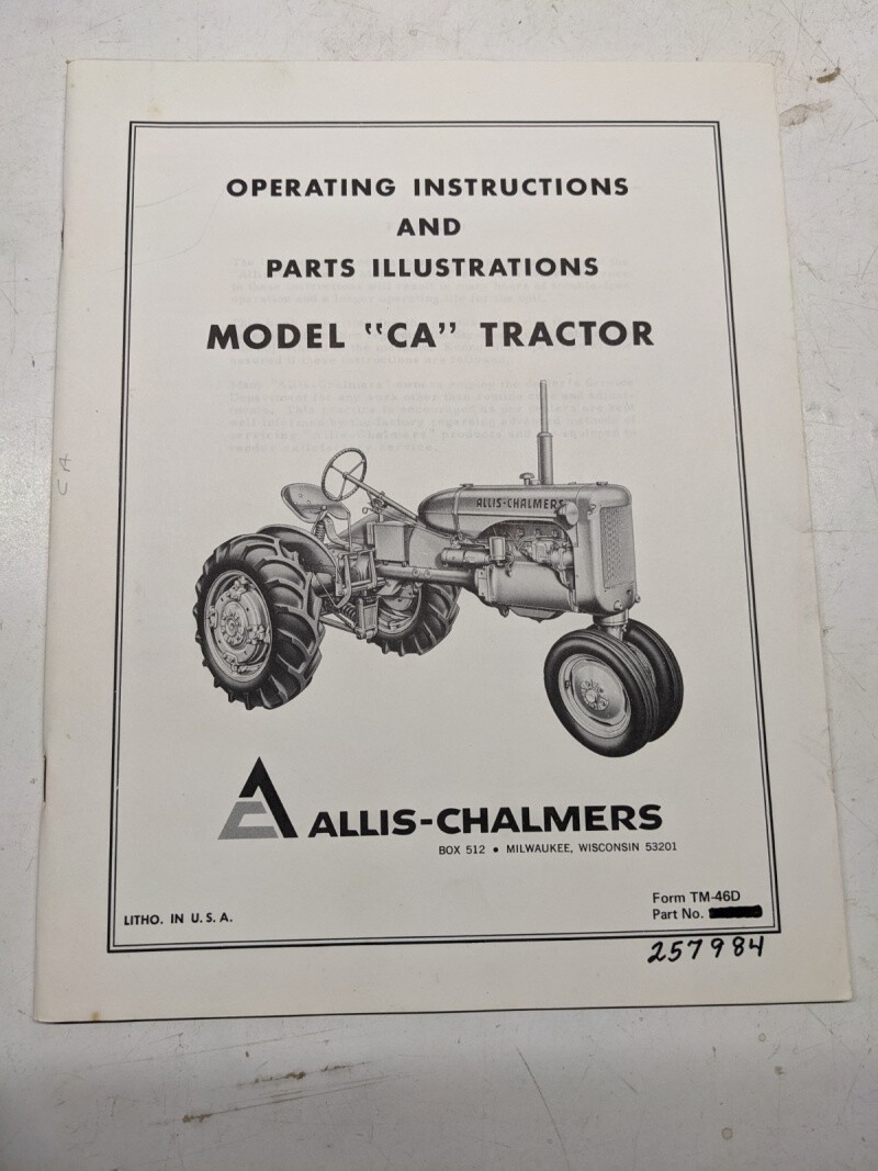 Allis Chalmers Operator Instruction Part Illustration Manual Ca Tractor Tm-46D