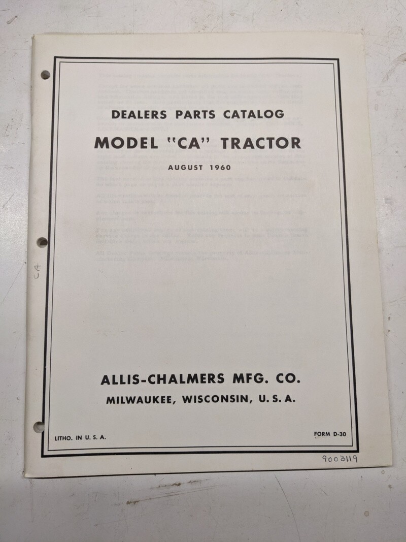 Allis Chalmers Parts List Book Manual Dealer Catalog Model Ca Tractor 1960