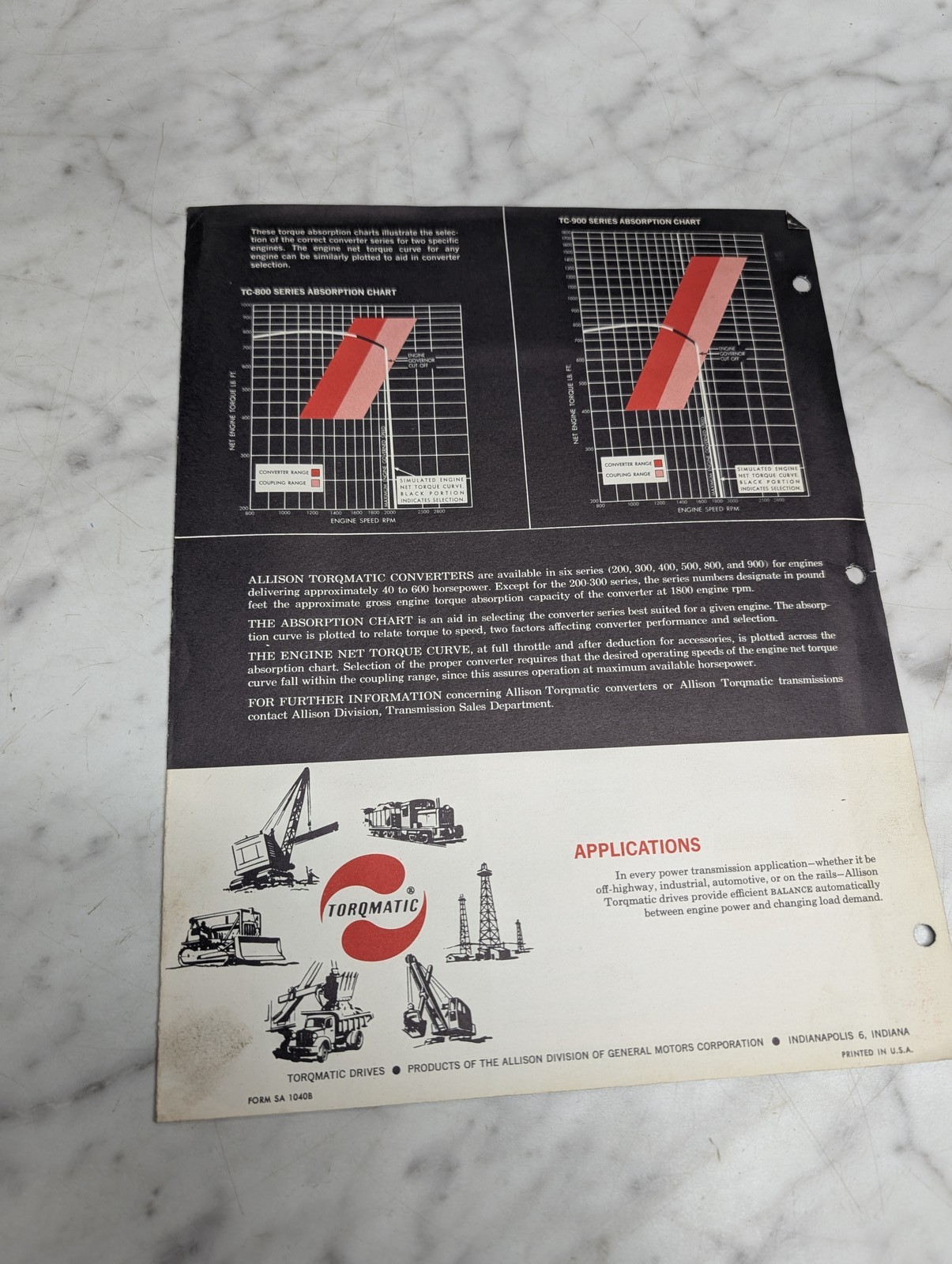 Allison Application Data Series 800-900 Torqmatic Converter Tc800-900