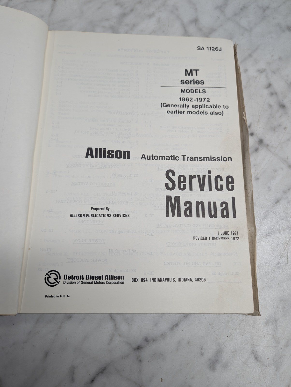 Allison Mt Series Automatic Transmission Sa 1126J Service Manual 1962-1972