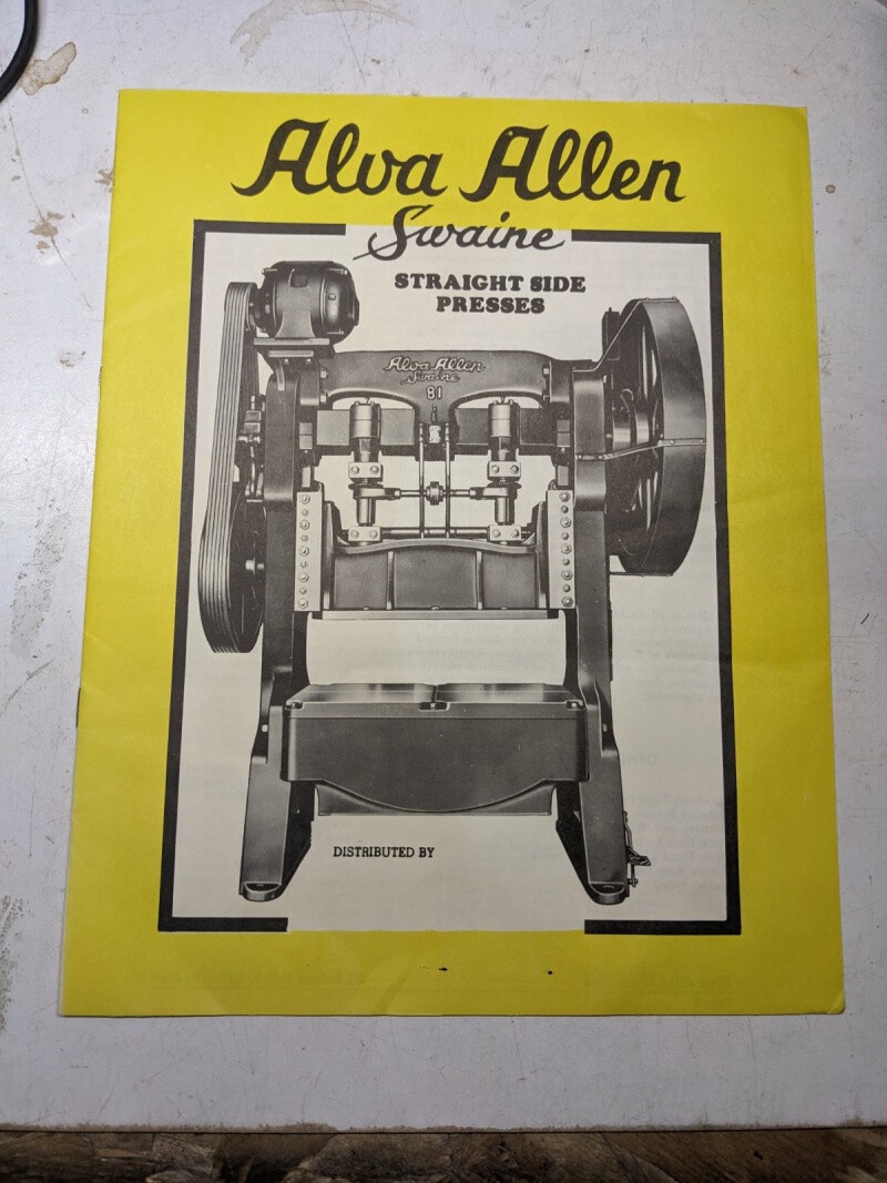 Alva Allen Swain Sales Brochure Catalog Features Specs Presses 81 Straight Side