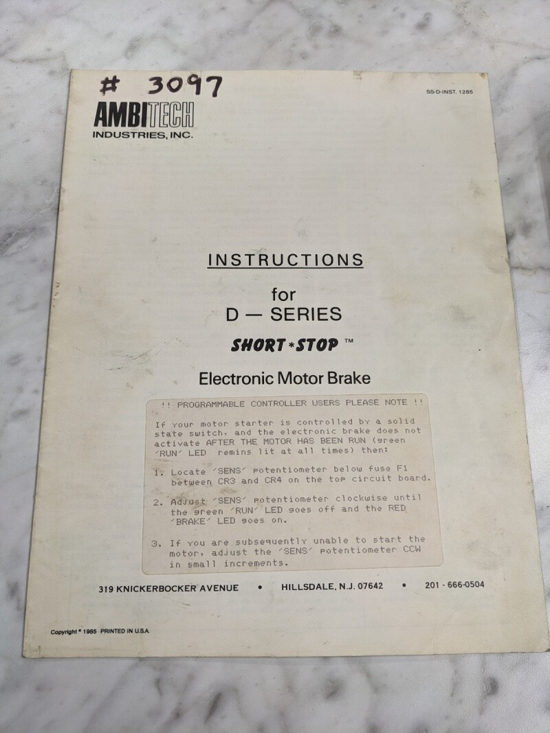 Ambitech Ind Instruction Service Manual D Series Short Stop Elecric Motor Brake