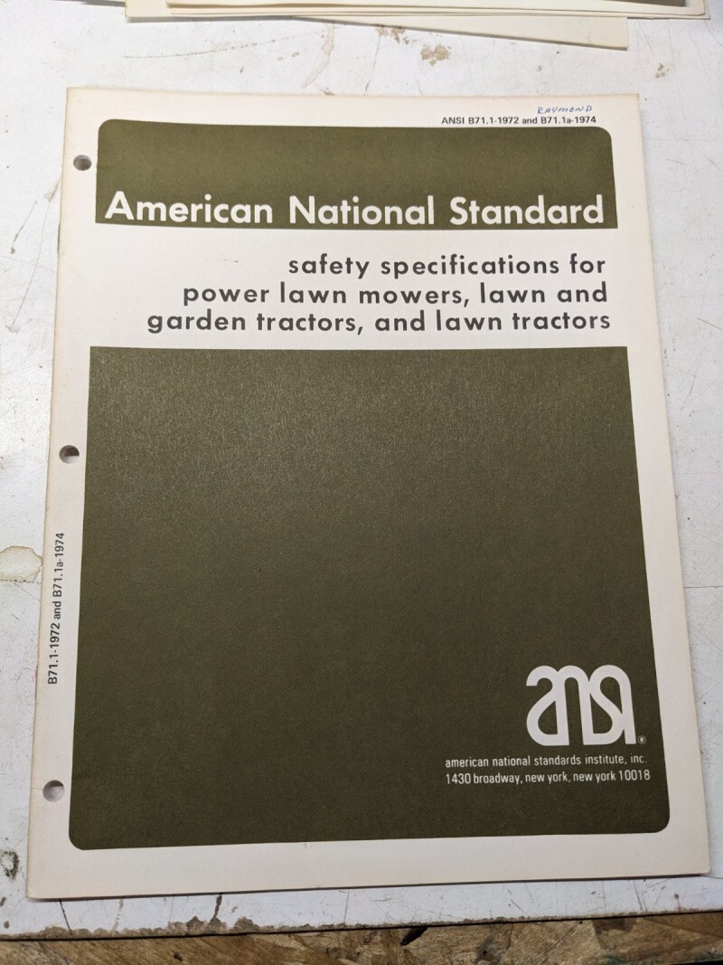 American National Standard Ansi 1972-74 Safety Specs Lawn Mowers Garden Tractor