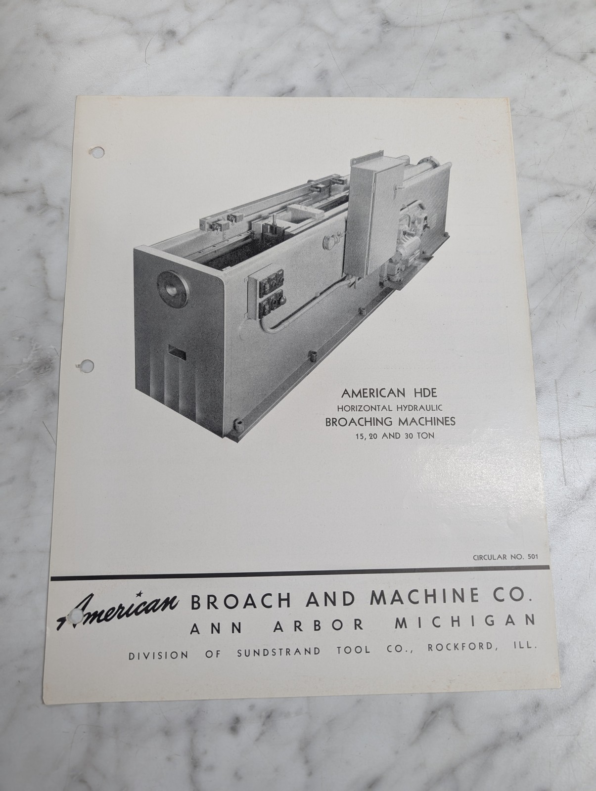 American Sales Brochure Literature Hde Broaching Machine 15 20 30 Ton