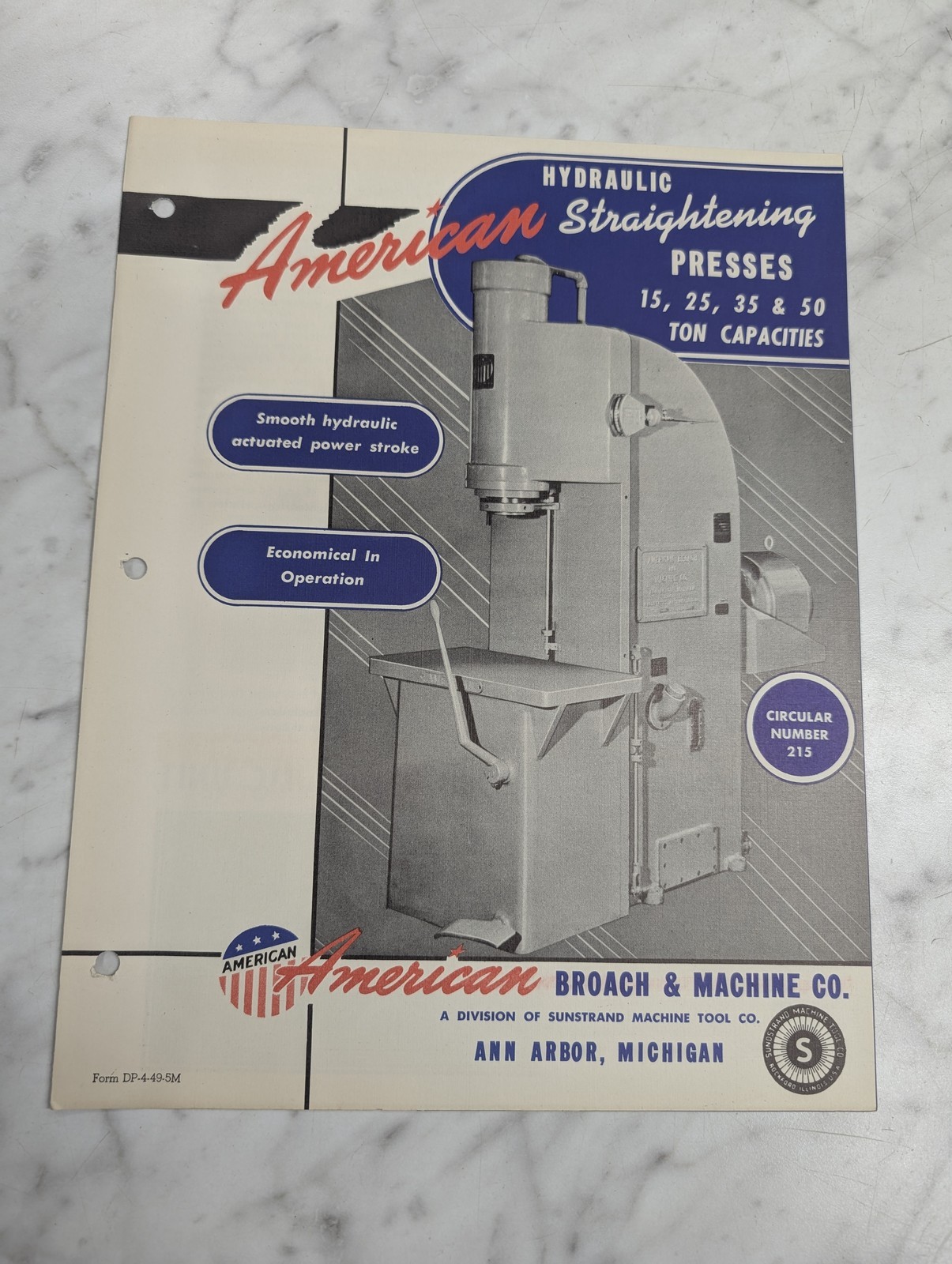 American Sales Brochure Literature Hydraulic Straightening Press 15 25 35 50 Ton