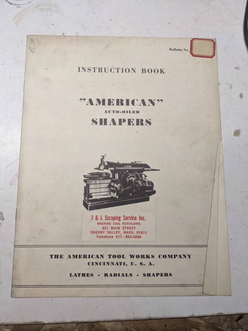American Tool Works Auto-Oiled Shapers Instruction Operator Manual Book 1939