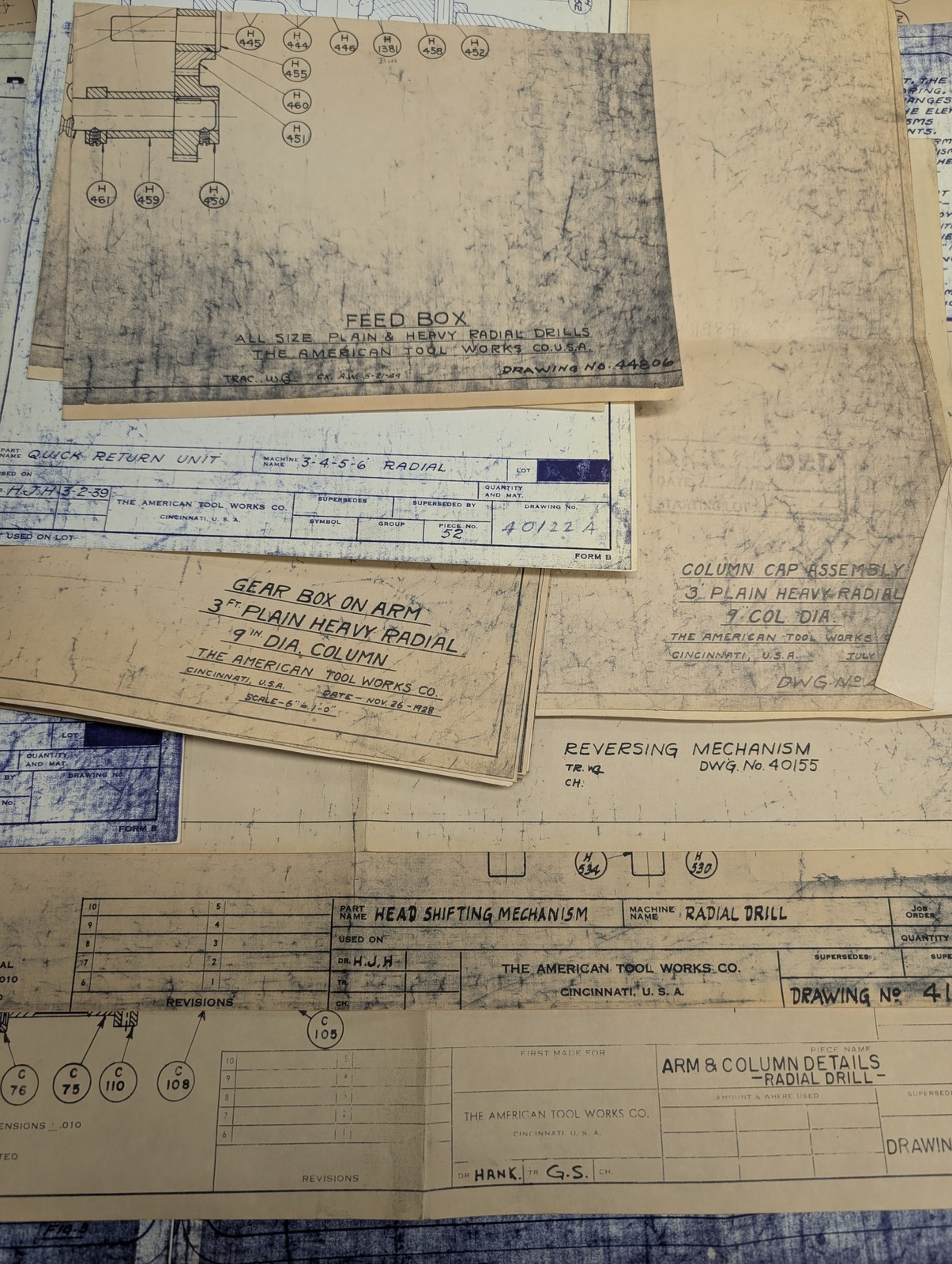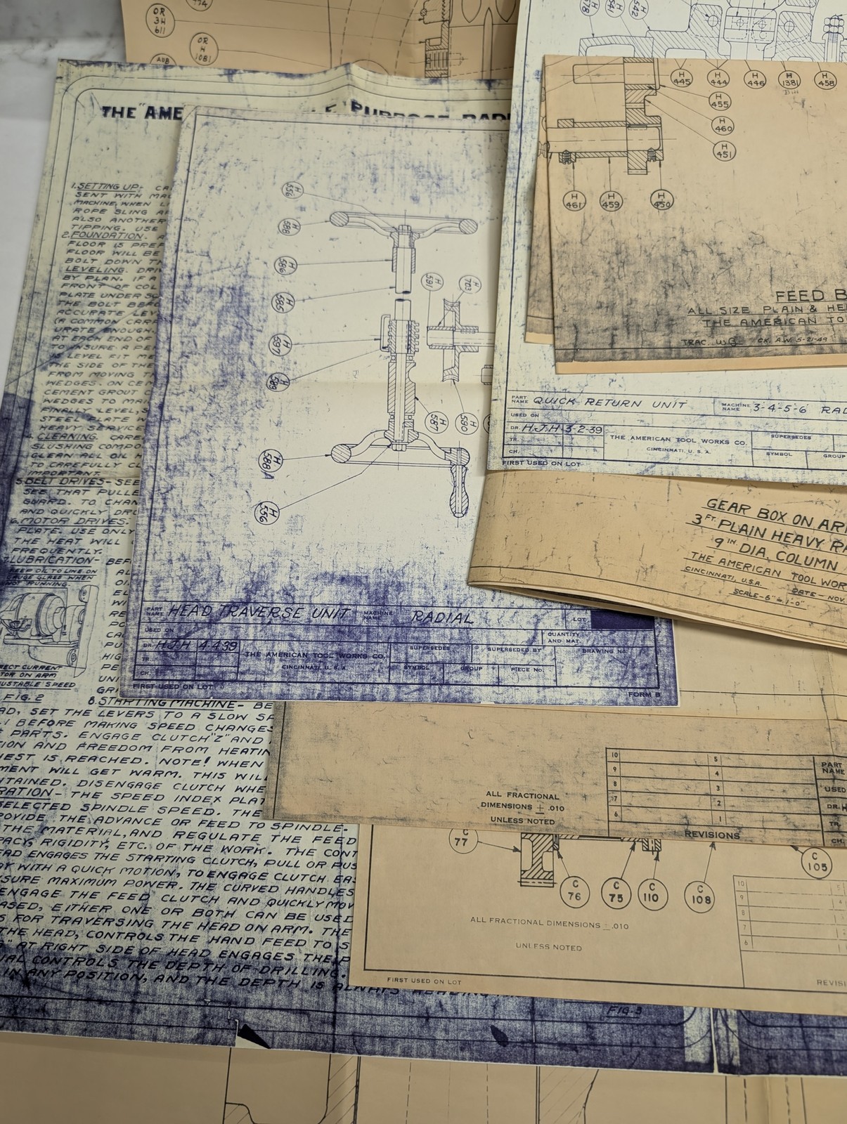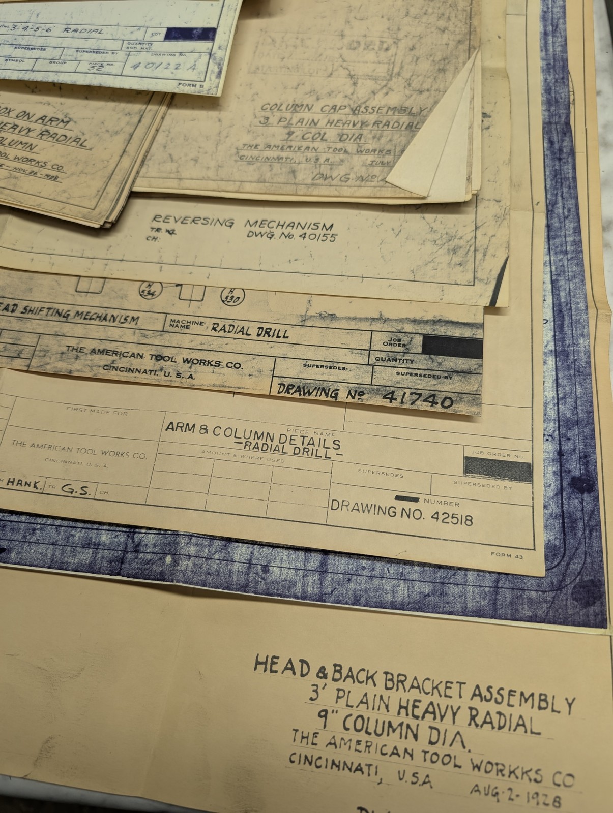 American Tool Works Machine 3” Plain Radial Drill Blue Prints Diagrams Drawings