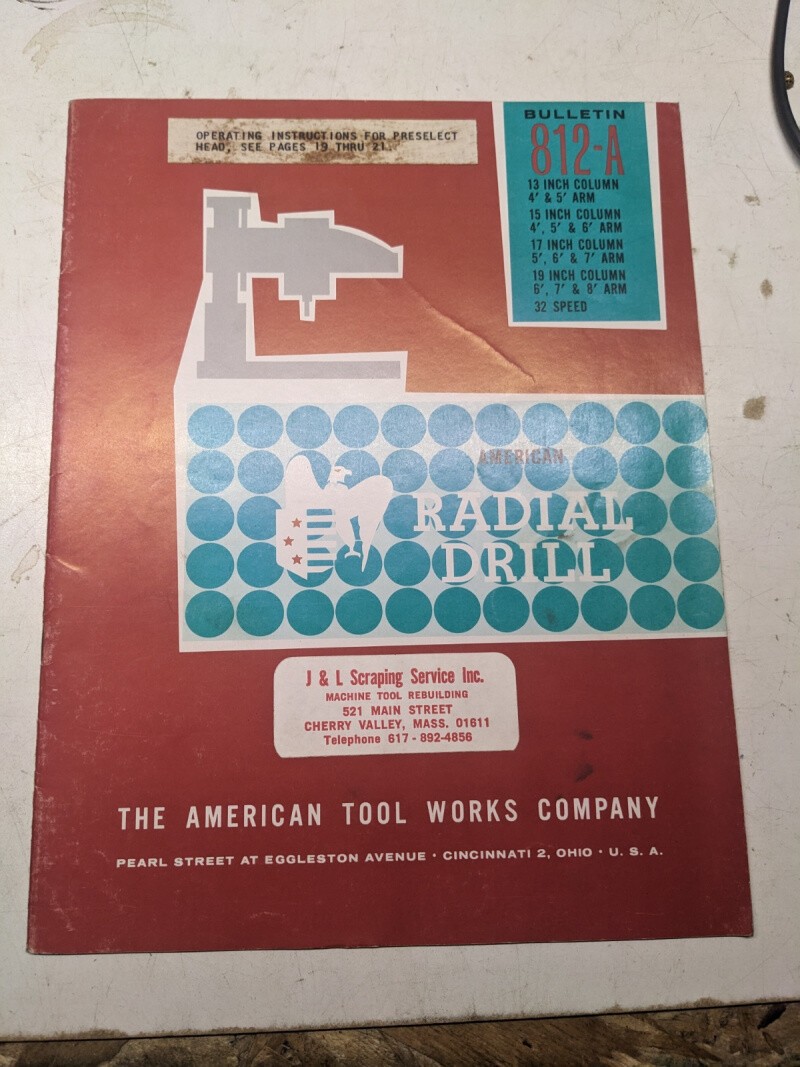 American Tool Works Radial Drill 812-A Sales Brochure Catalog Specs Features