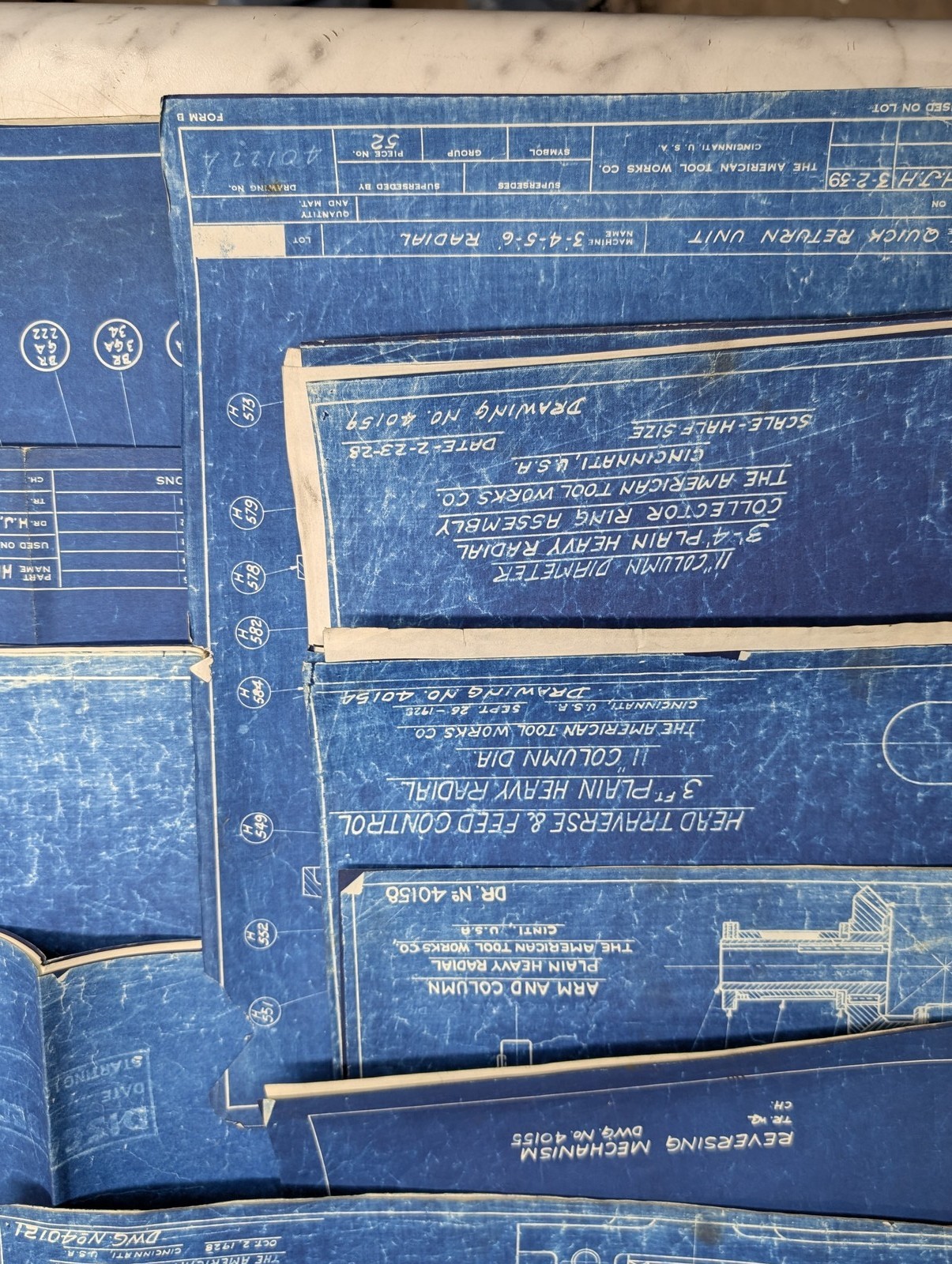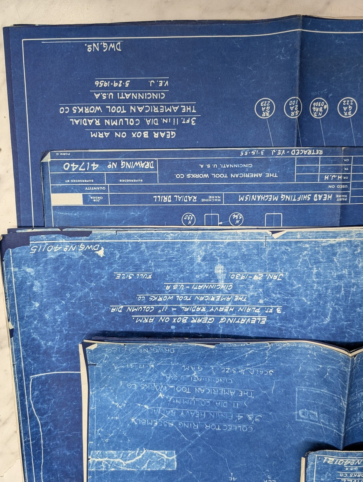 American Tool Works Radial Drill Blue Prints Drawings Diagrams Information Lot
