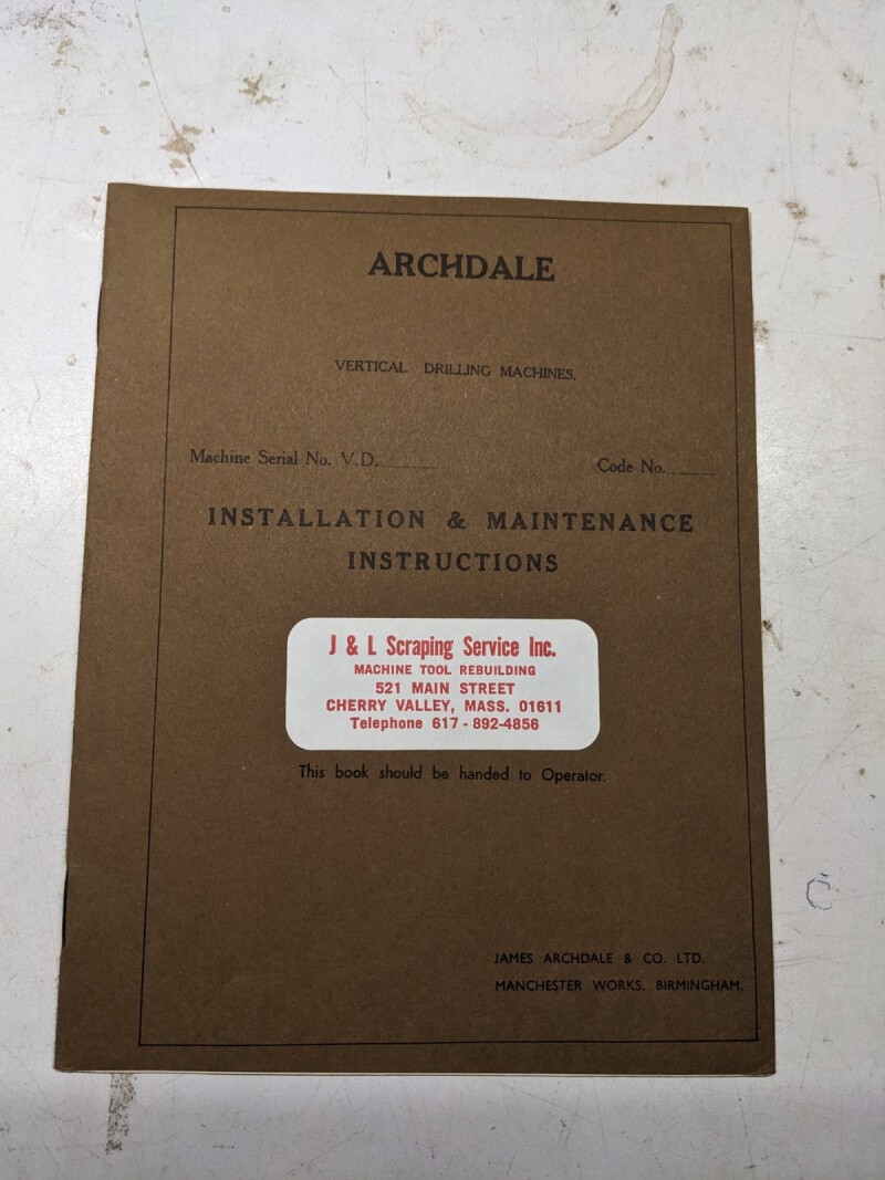 Archdale Instruction Operator Service Maintenance Manual Drilling Machine Vd