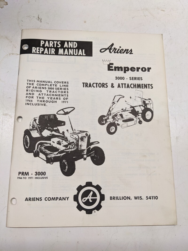 Ariens Parts List Book Repair Service Manual Emperor 3000 Tractor 1966-1971 Prm-