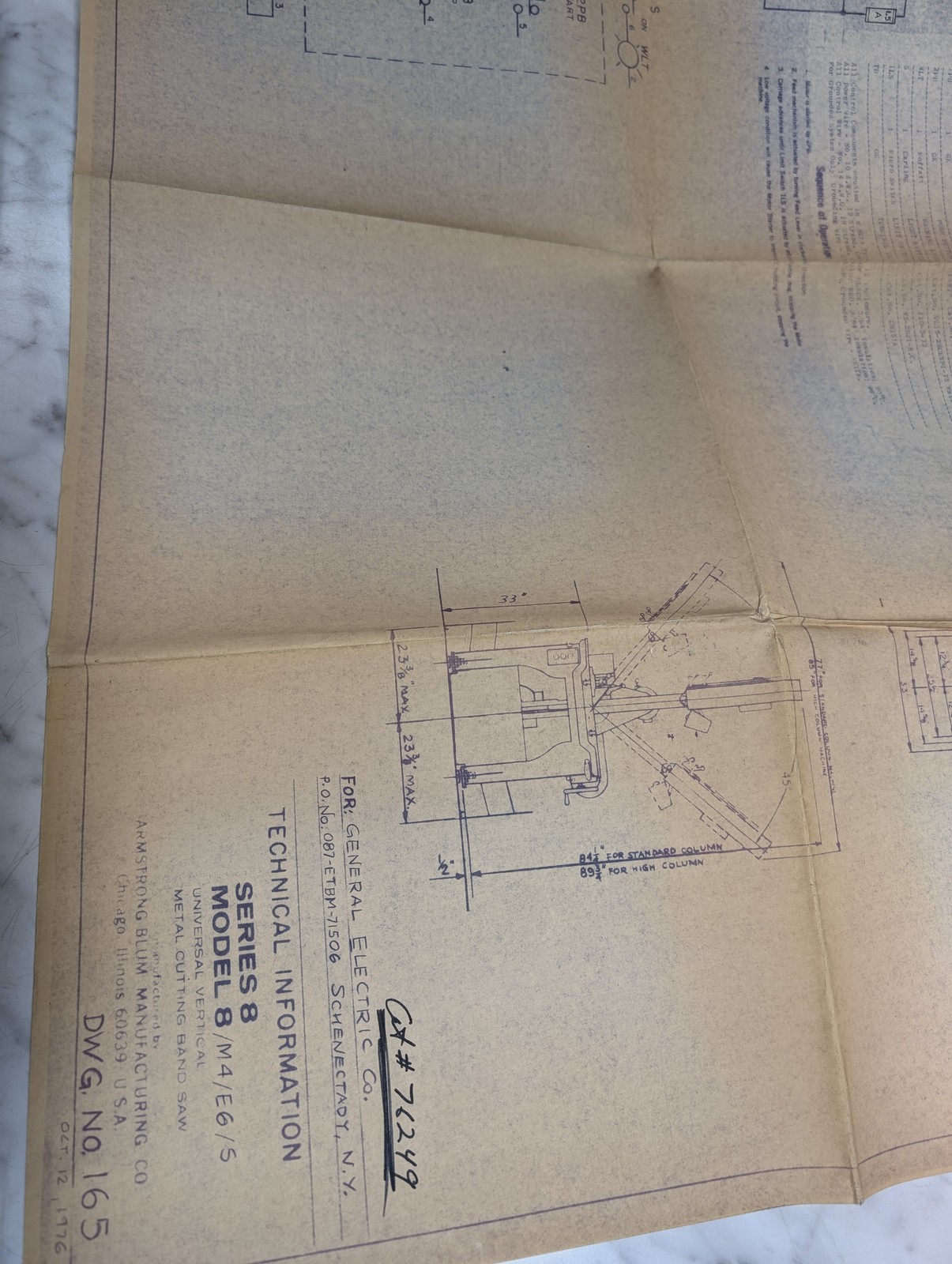 Armstrong Blum Series 8 Model M4 E6/S Marvel Band Saw Technical Print Diagram