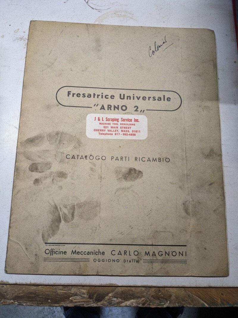 Arno Service Spare Part List Shop Book Catalog Manual #2 Milling Machine Italian