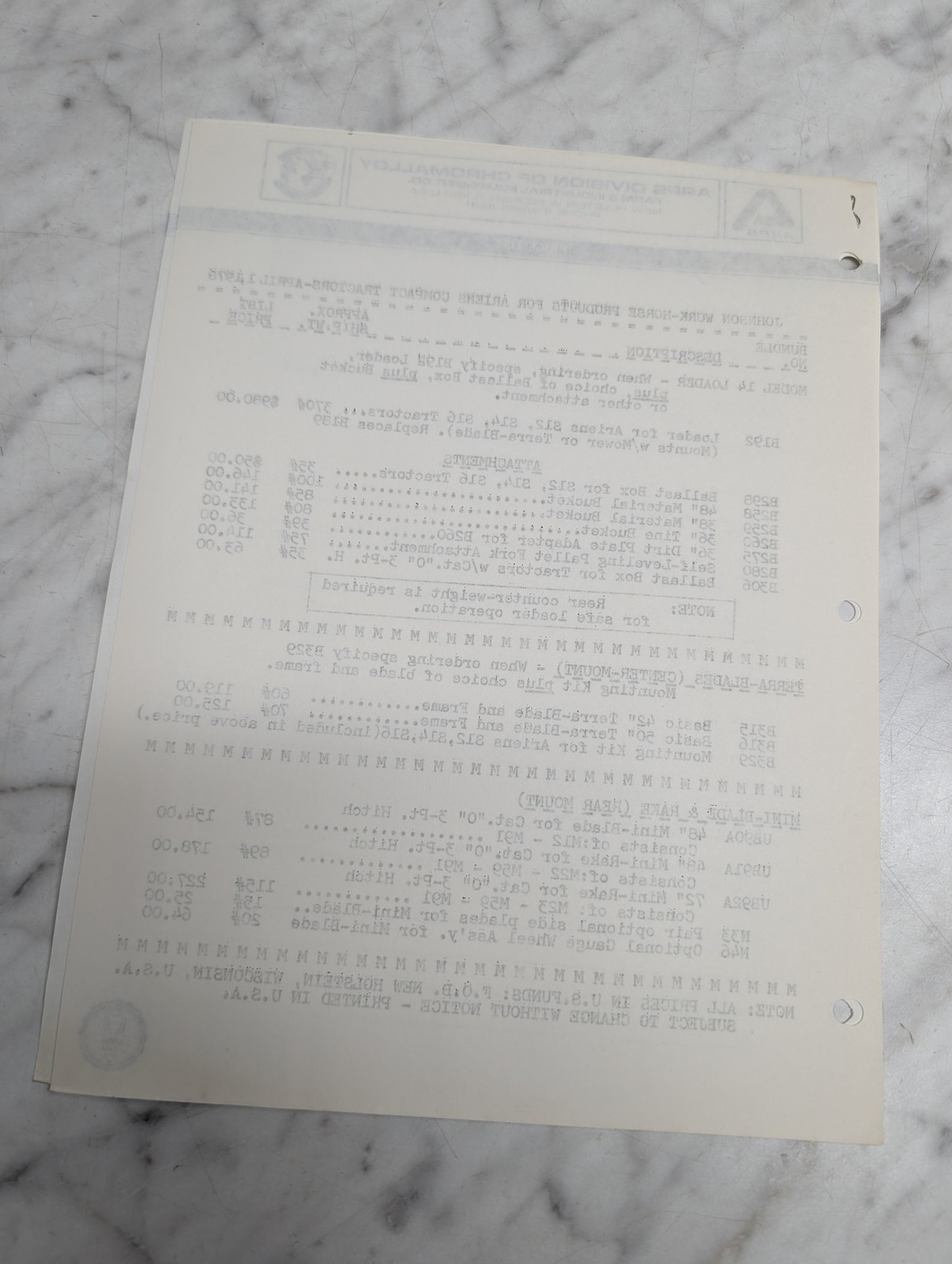 Arps Ariens Compact Tractors Price List Johnson Work Horse April 1 1978