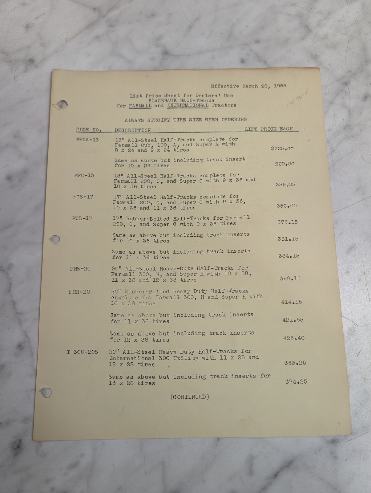 Arps Blackhawk Price List Half Tracks Farmall Ih Tractors Sales Literature